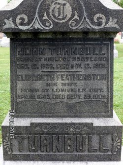 | Marriage | She married John Turnbull on 12 February 1863 in Wentworth, Ontario, Canada. Elizabeth Featherston was, age 19, John Turnbull was, age 34.3 |