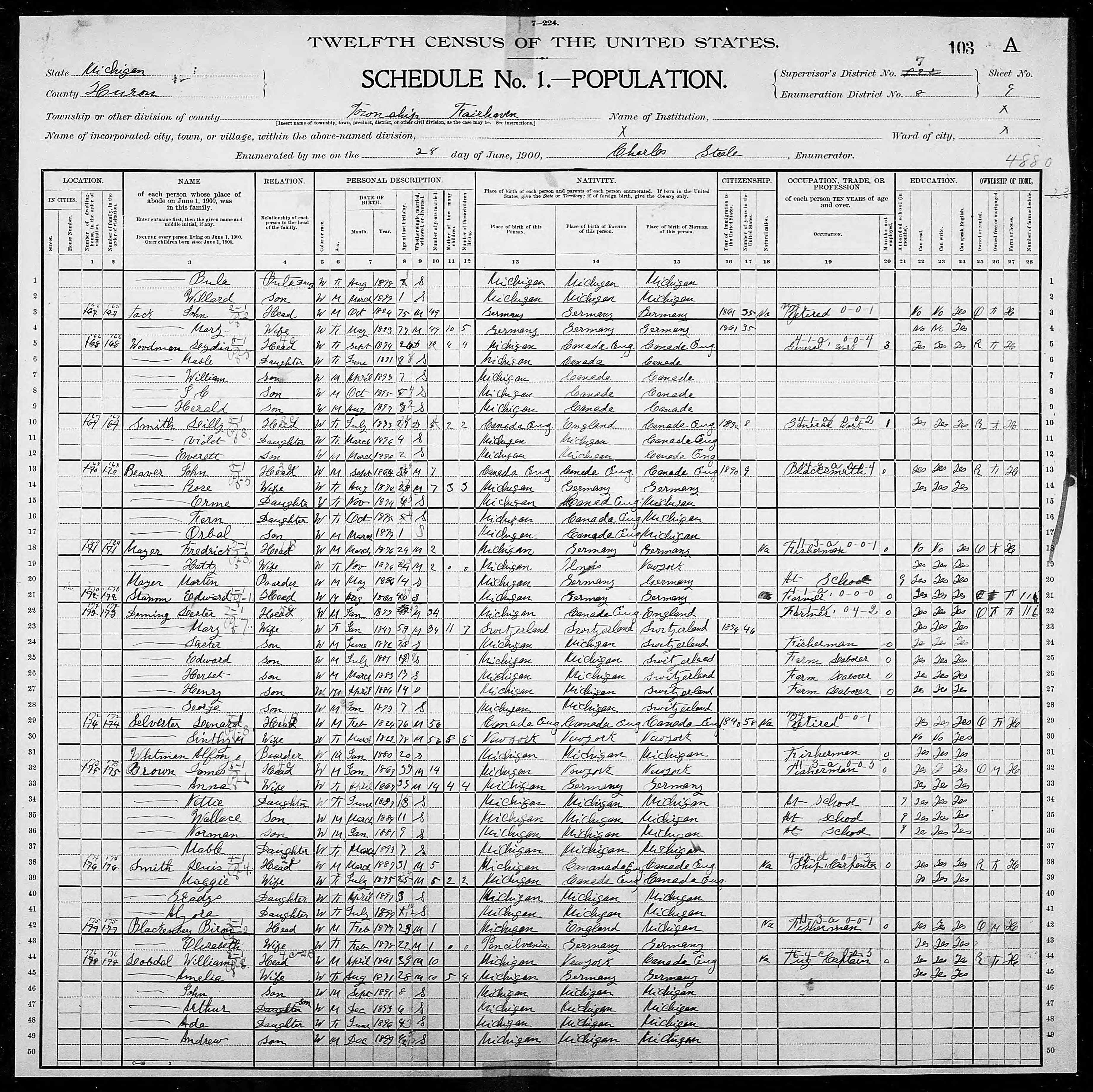 | Residence | He lived in Bath, Clinton, Michigan, USA, in 1880.7 |