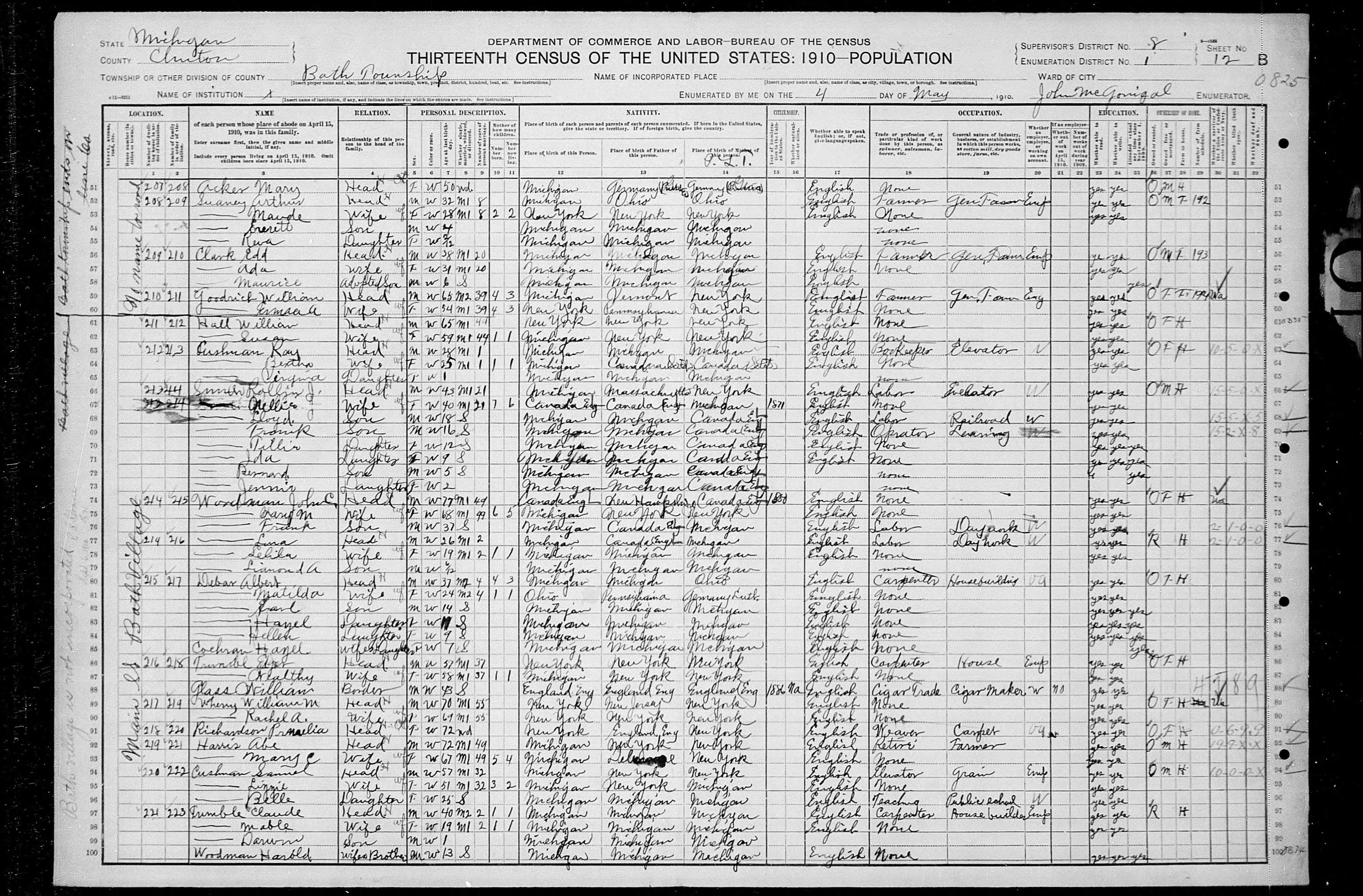 | Residence | He lived in Bath, Clinton, Michigan, USA, in 1910.14 |