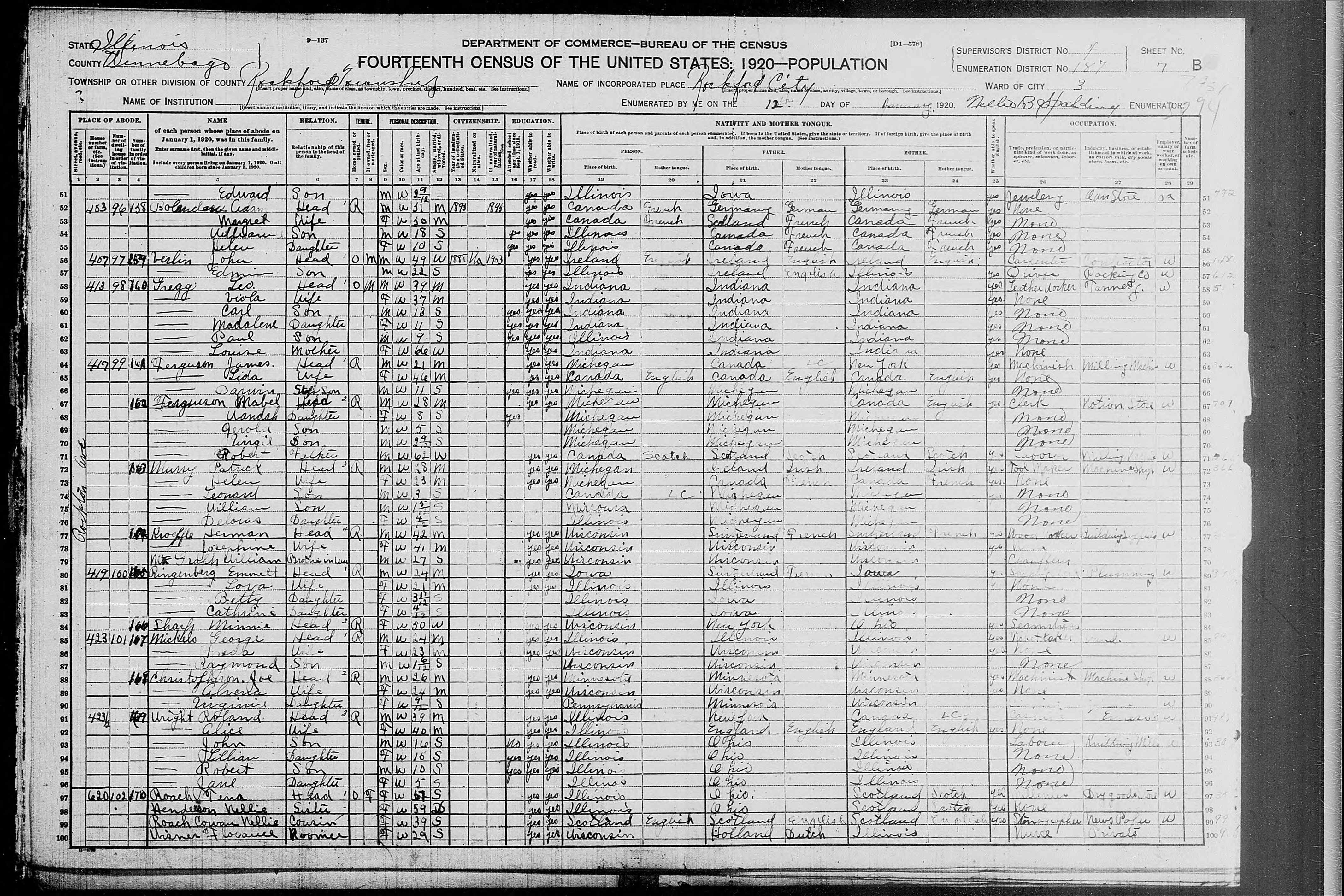 | Residence | Gerald "Jerry" Ivan Trumble lived Marital Status: Single; Relation to Head: Son in Rockford Ward 3, Winnebago, Illinois, USA, in 1920.1,2,18 |