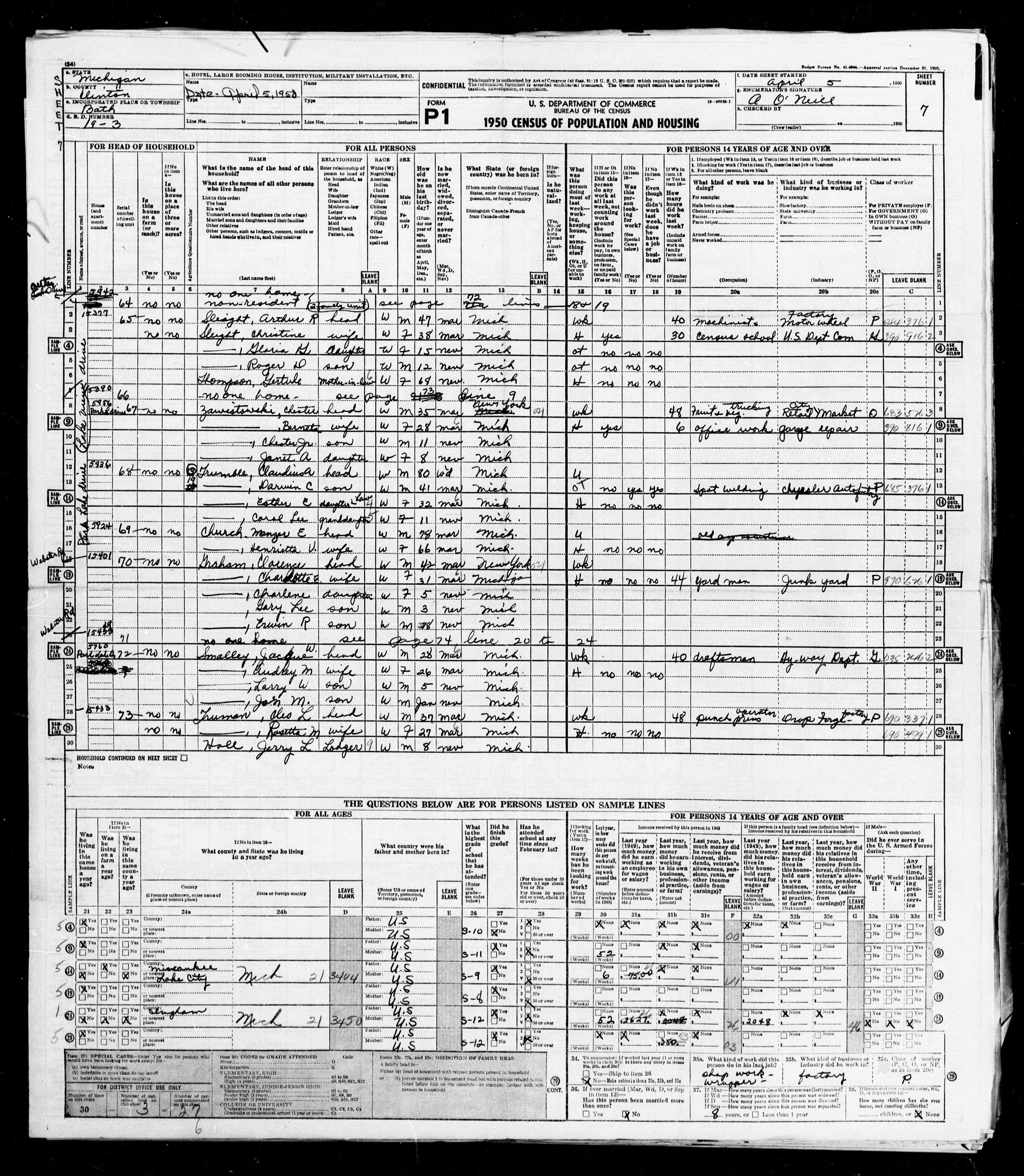 | Residence | He lived in Bath, Clinton, Michigan, USA, in 1950.18 |