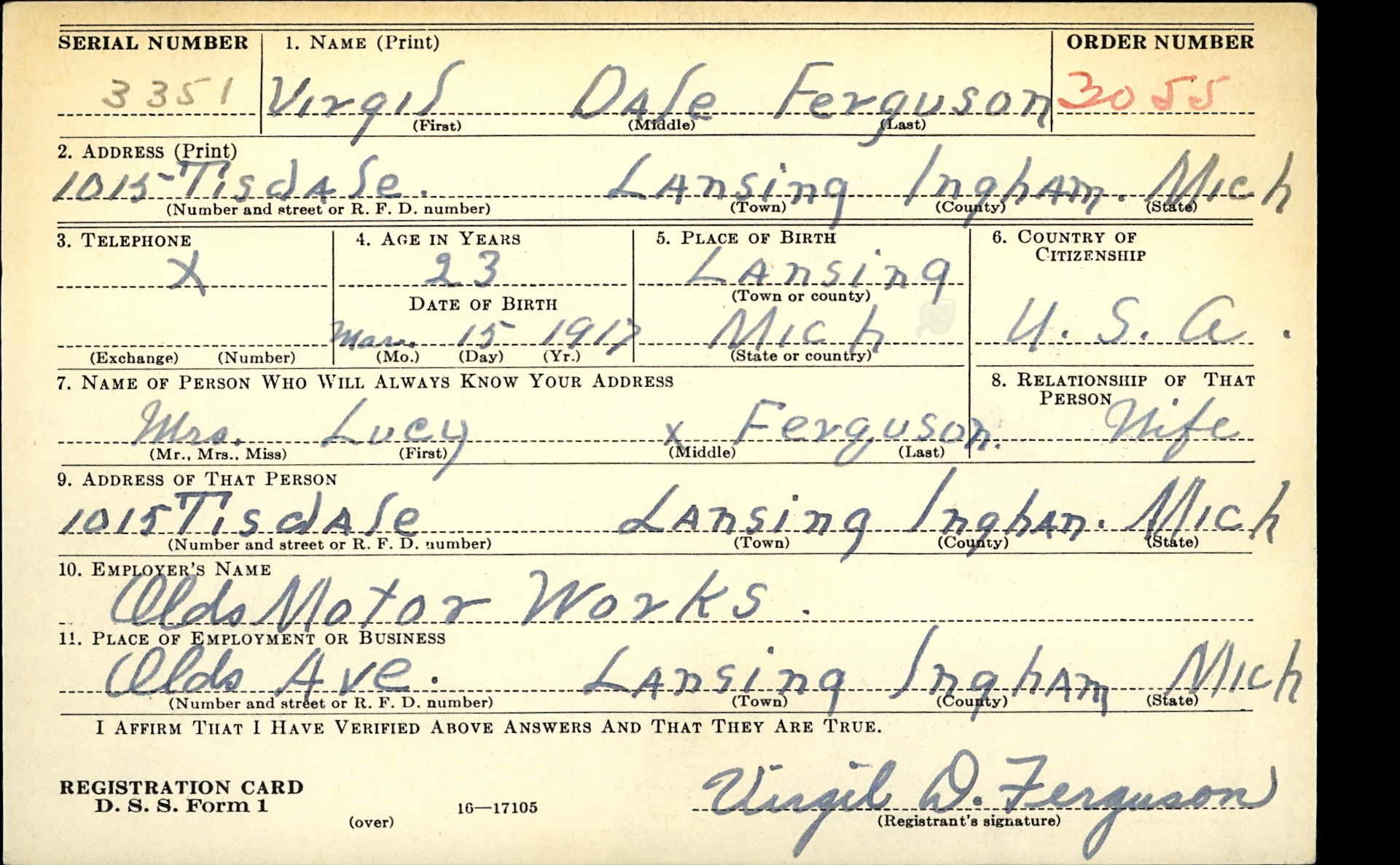 | Residence | He lived in Lansing, Michigan, on 21 June 1941.5,5 |
