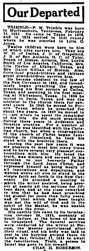 | Residence | Henry Trimble lived Marital Status: Single; Relation to Head of House: Son in Justice Precinct 1, Lamar, Texas, USA, in 1900.1 |