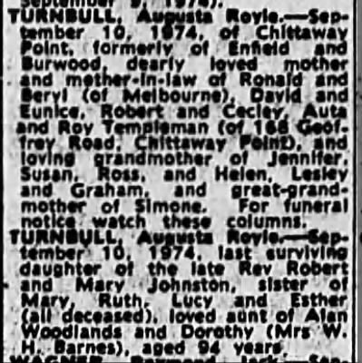- [S1296] Ancestry.com, U.S., Newspapers.com™ Birth Index, 1800s-2003, The Hobart Democrat-Chief; Publication Date: 17/ Apr/ 1960; Publication Place: Hobart, Oklahoma, USA; URL: https://www.newspapers.com/image/908928908/?article=85fd0ac1-f9aa-485b-982a-f266cba46f9d&xid=5905&terms=Thomas_Turnbull, See newspaper information provided with each entry.