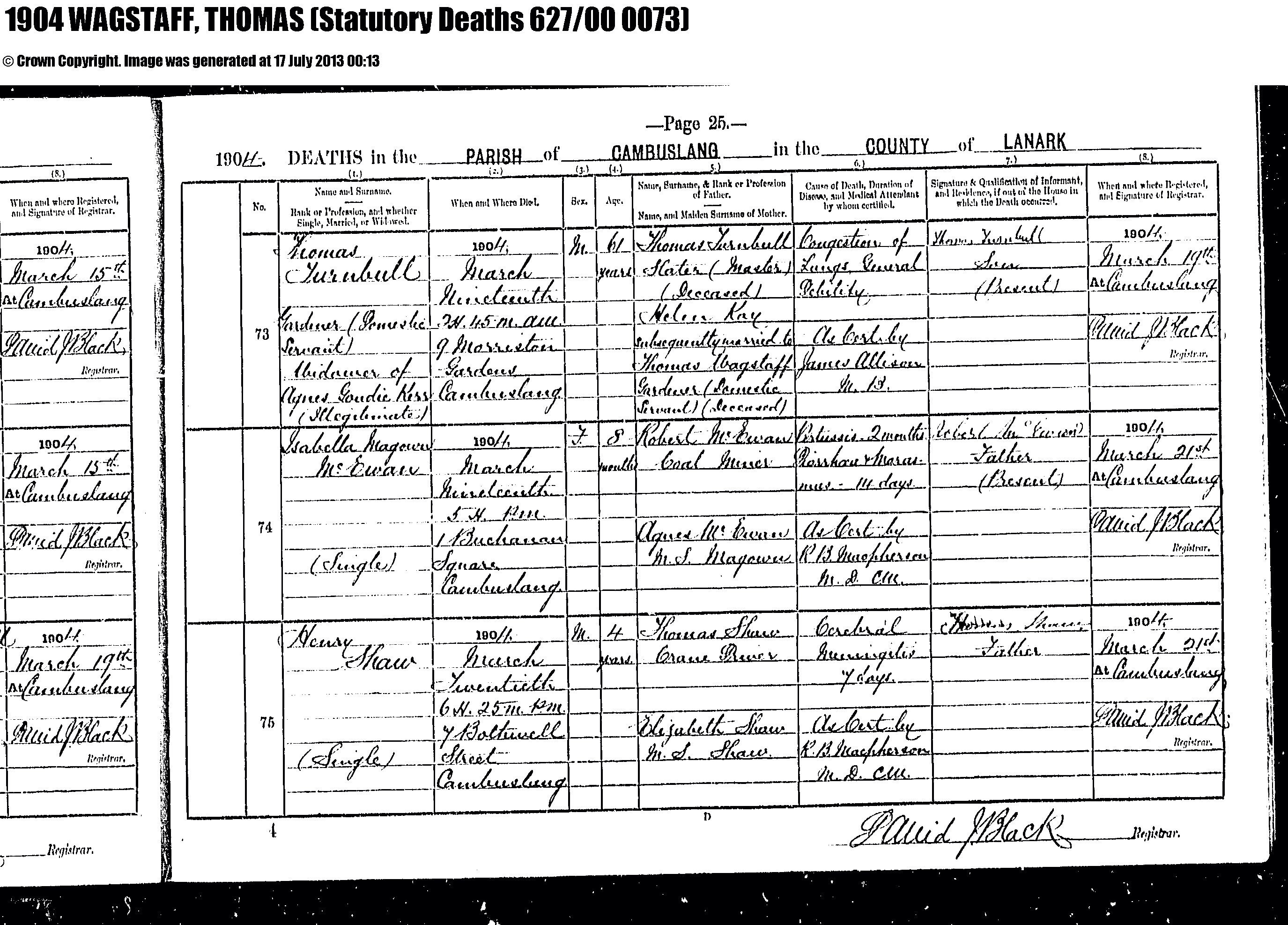 Death Registration Thomas Turnbull