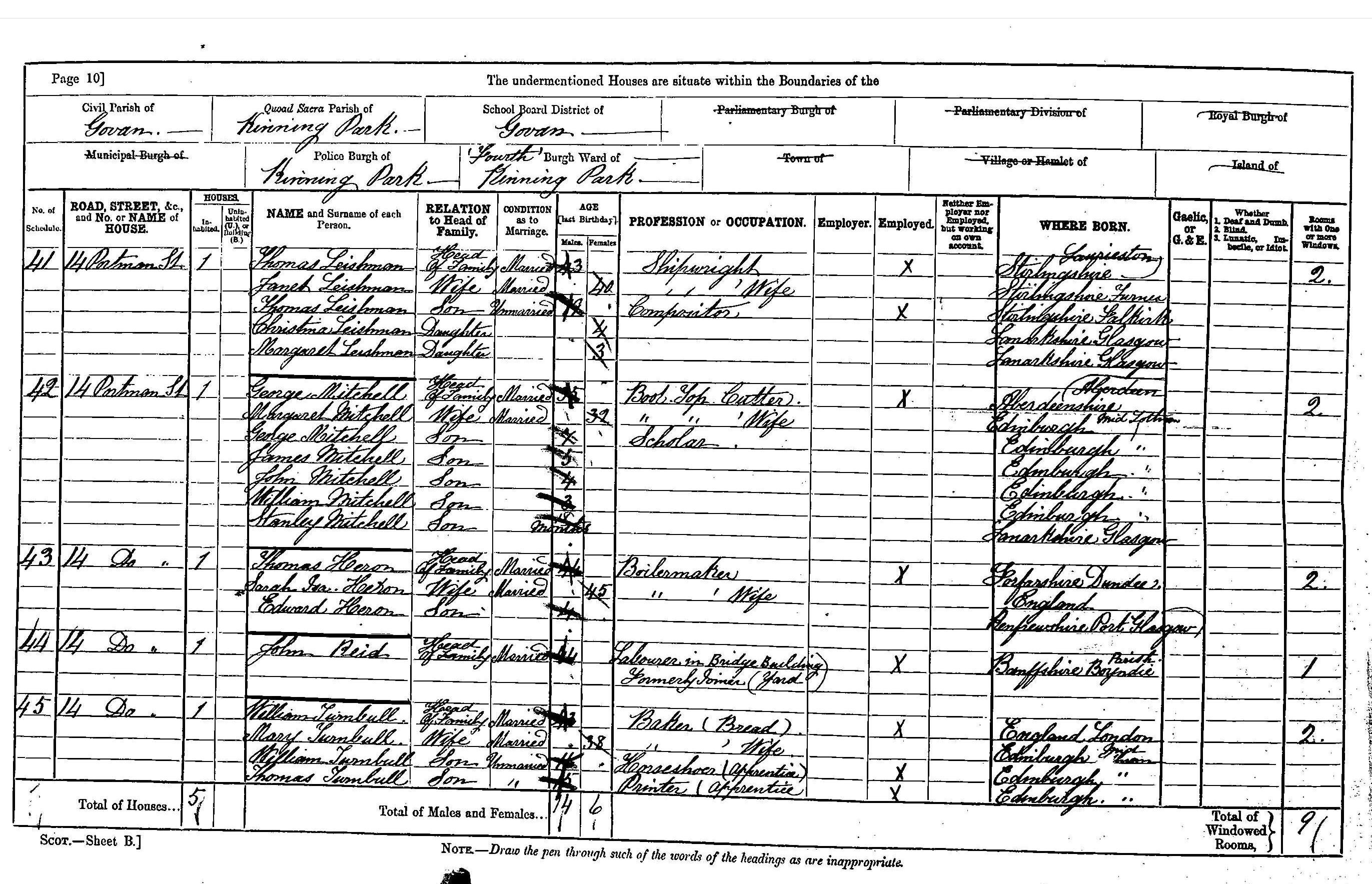 | Residence | He lived in Glasgow Govan, Lanarkshire, Scotland, in 1891.2 |