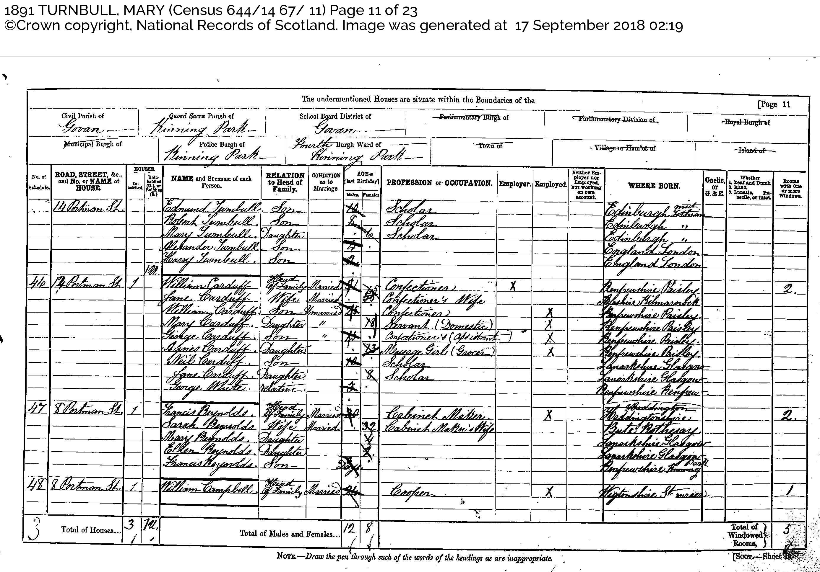 | Residence | She lived in Glasgow Govan, Lanarkshire, Scotland, in 1891.8 |