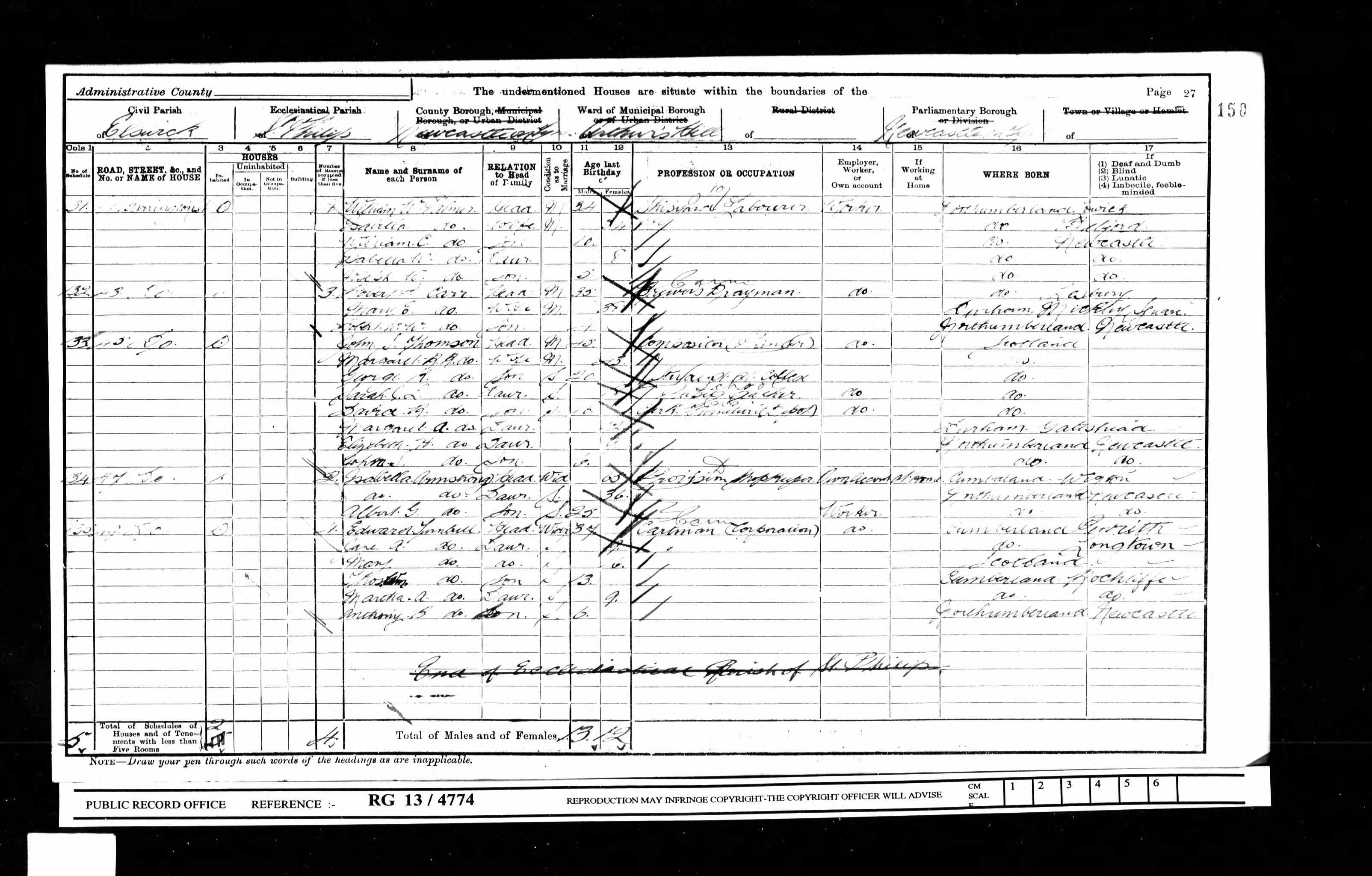 - [S2336] Ancestry.com, 1901 England Census (Name: Ancestry.com Operations Inc; Location: Provo, UT, USA; Date: 2005;), Class: RG13; Piece: 4774; Folio: 150; Page: 27