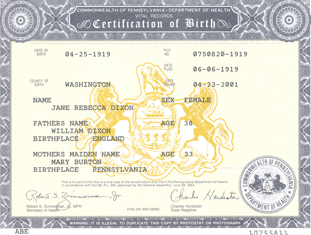 | Residence | Jane Rebecca Dixon lived in Brecksville, Ohio, USA.10 |
