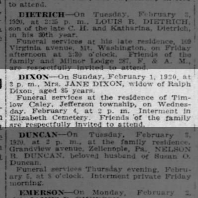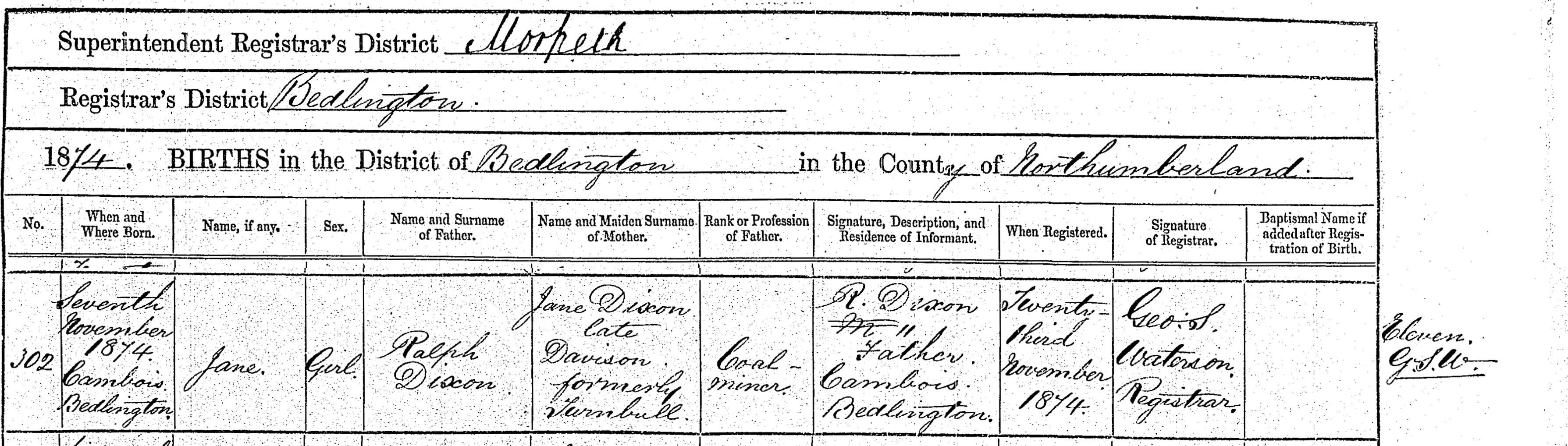 Family: Jane Dixon (b. 7 October 1874, d. 29 September 1919)