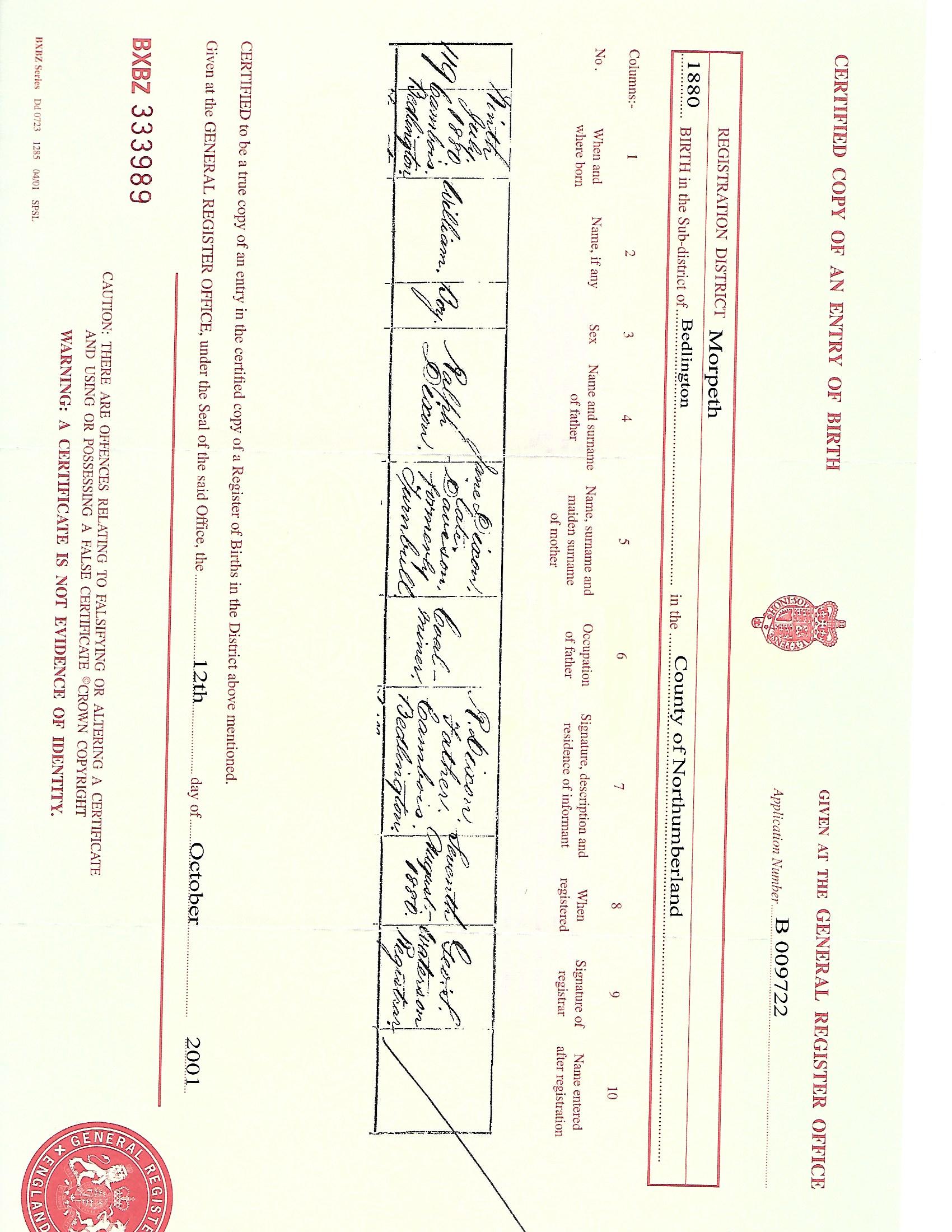 | Birth | He was born on 3 July 1880 in Cambois, Northumberland Unitary Authority, Northumberland, England.1,2,3,5,6,7,8 |