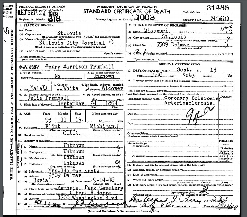 | Burial | Henry Harrison Trumbull was buried in Jennings, St. Louis County, Missouri, United States of America.2 |
