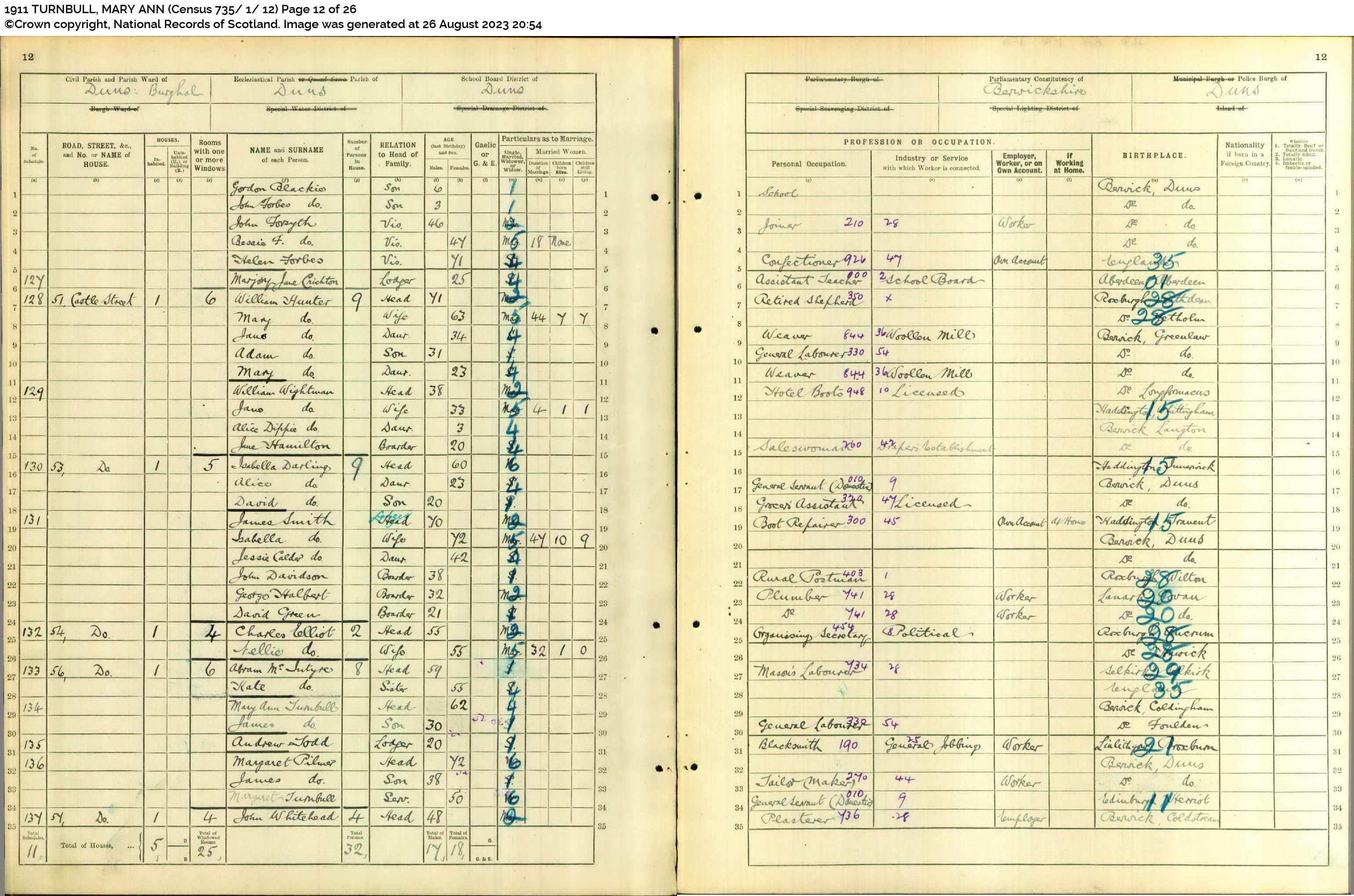 1911 TURNBULL, MARY ANN & JAMES (Census 735 1 12) Page 12 of 26 (ScotlandsPeople)