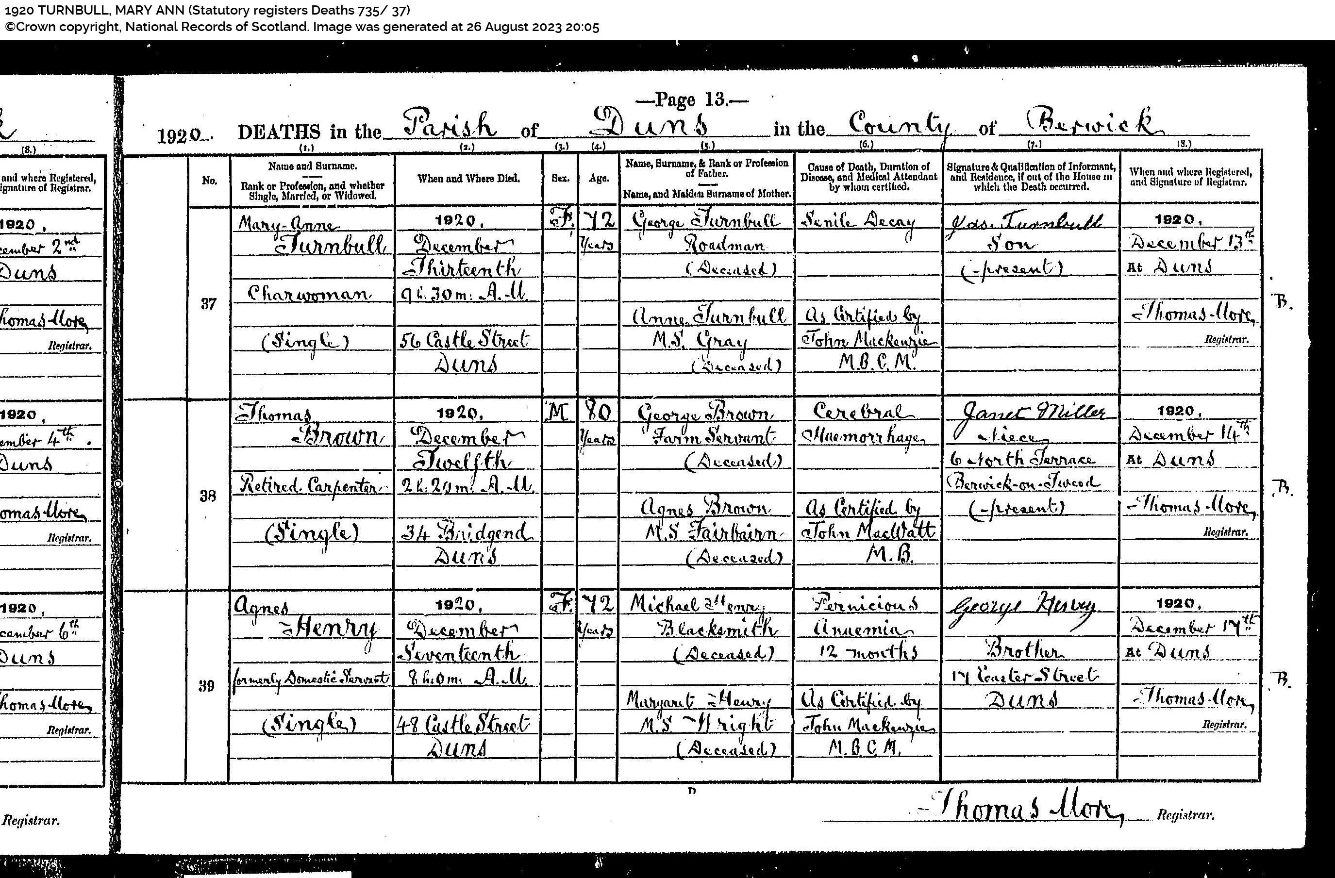 1920 TURNBULL, MARY-ANNE (Statutory registers Deaths 735 37) (ScotlandsPeople)