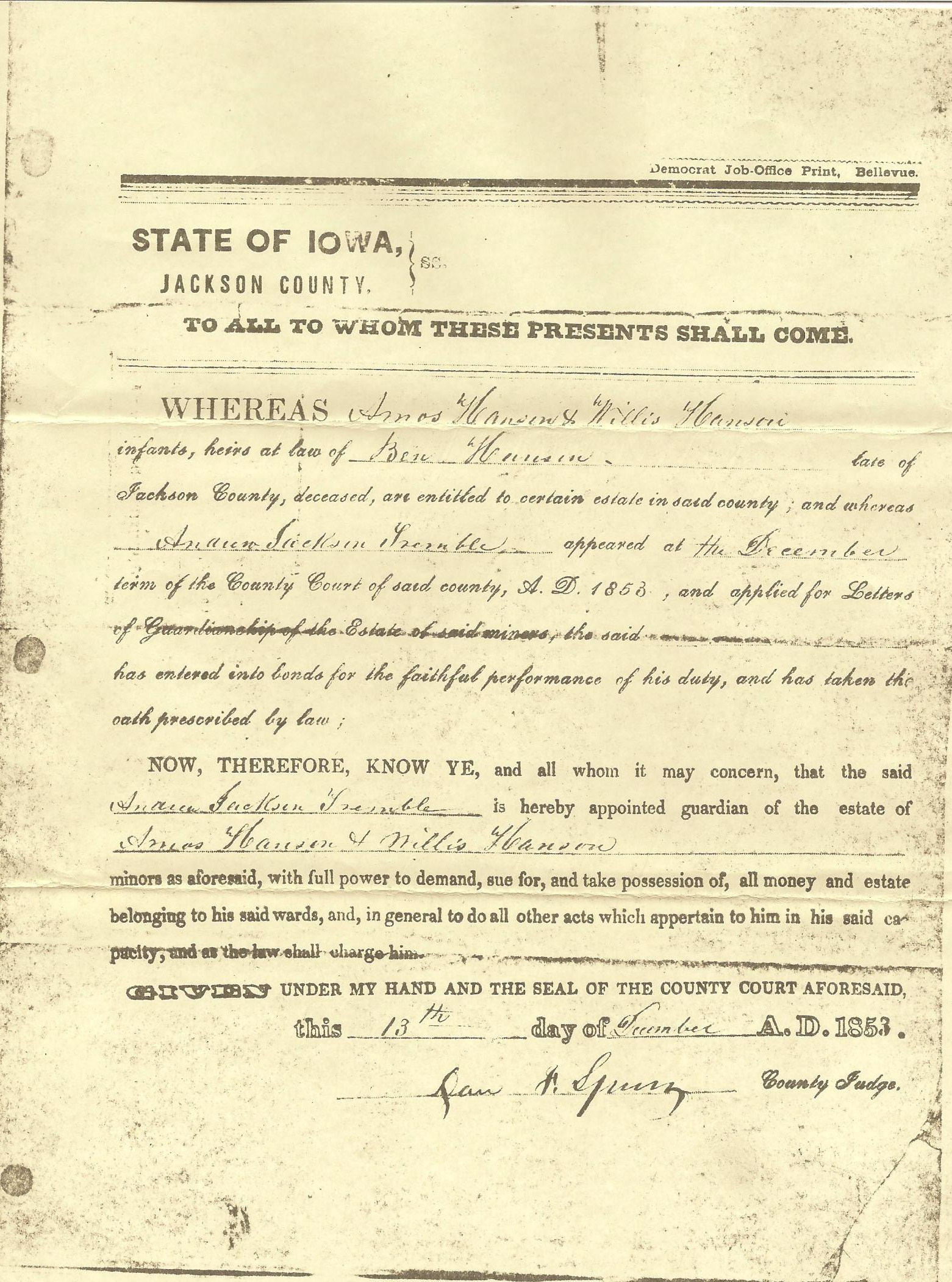 Guardianship papers--Amos & Willis Hanson