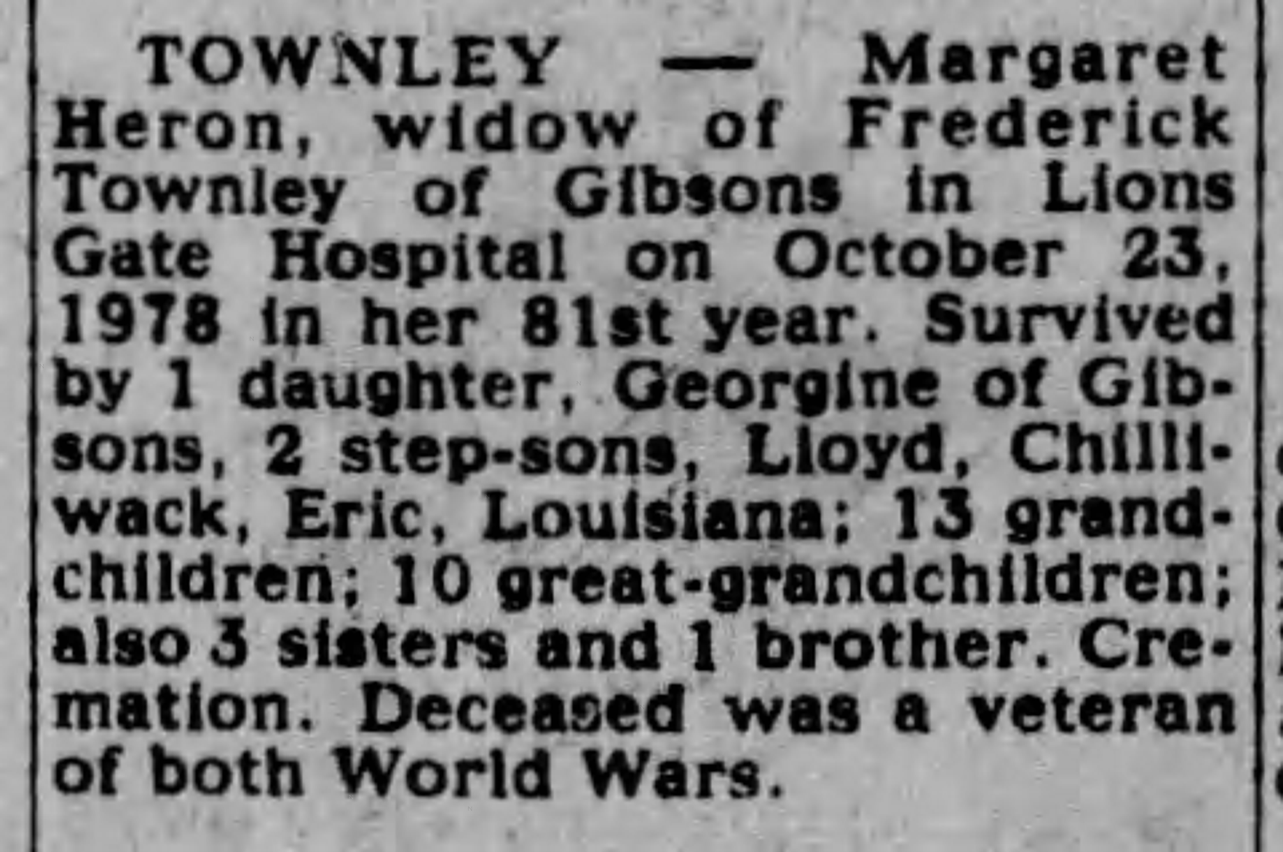 | Death | She died on 23 October 1978 at age 80 in Vancouver, B.C., Canada.1 |