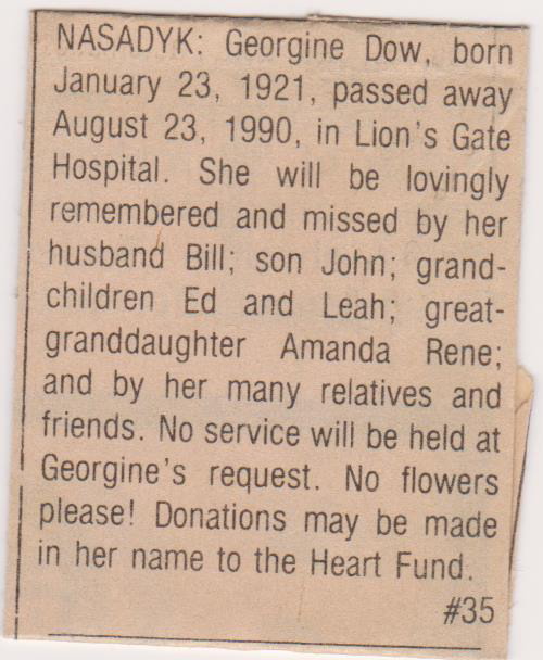| Birth | Georgine Dow Turnbull was born on 23 January 1921 in Calgary, Alberta, Canada.1,3 |