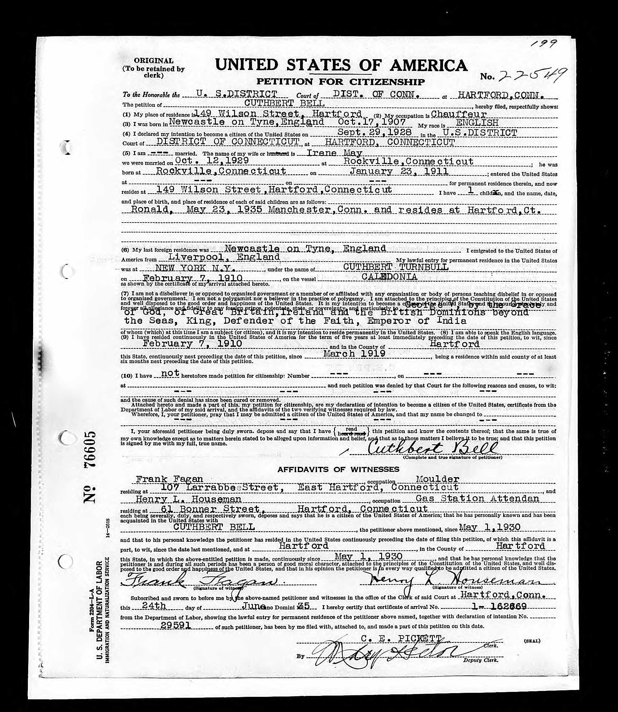 | Residence | He lived in Waterbury, New Haven, Connecticut, in 1935.1 |