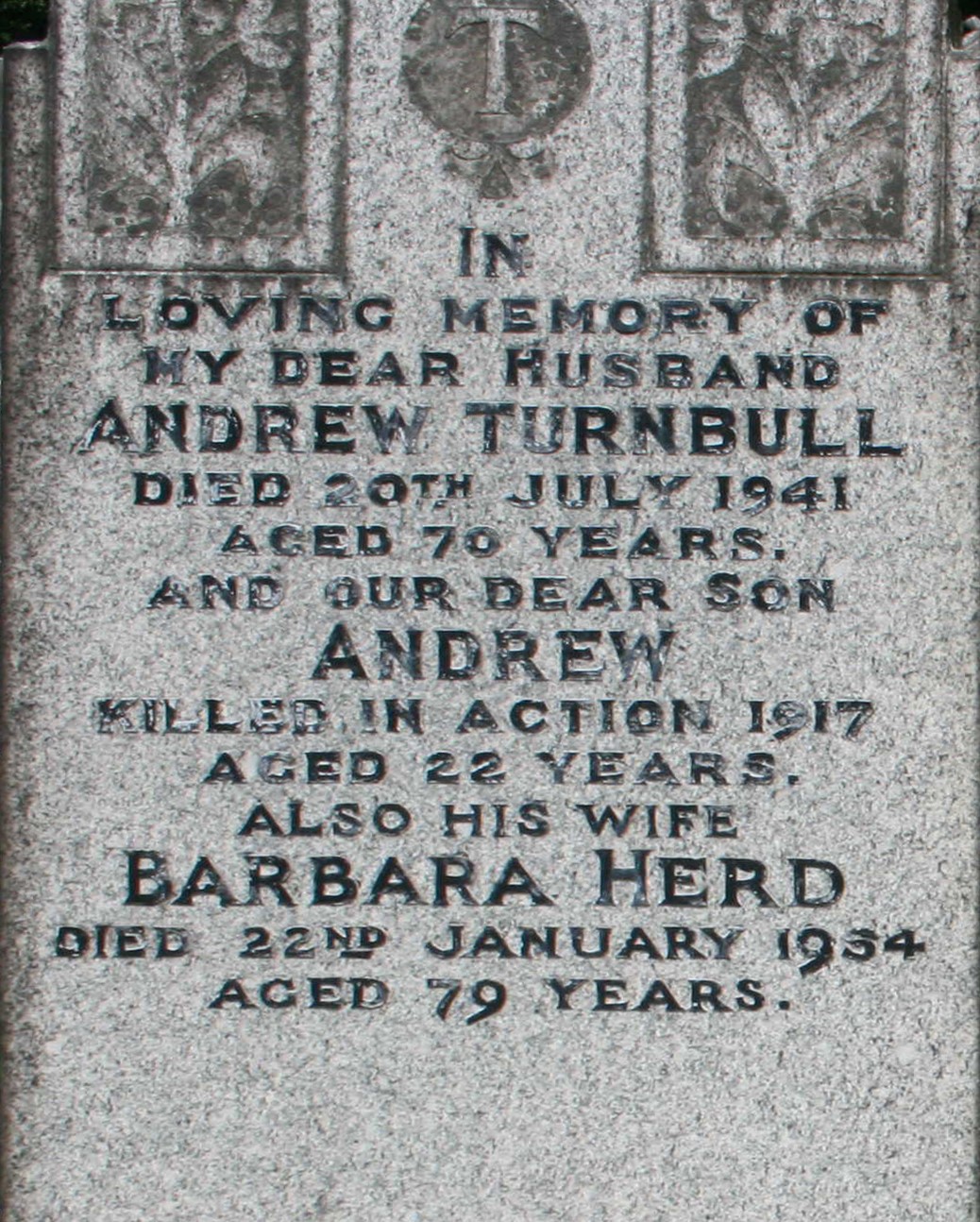 | Burial | Andrew Turnbull was buried in Arras, Departement du Pas-de-Calais, Nord-Pas-de-Calais, France.2,5,6 |