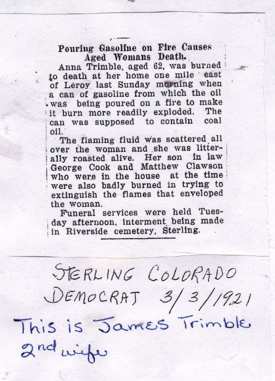 | Marriage | He married Marie Gertrude Cottrill on 6 July 1920 in Greeley, Weld, Colorado, USA. James Arlie Trimble, (Twin), was, age 31, Marie Gertrude Cottrill was, age 19.3 |