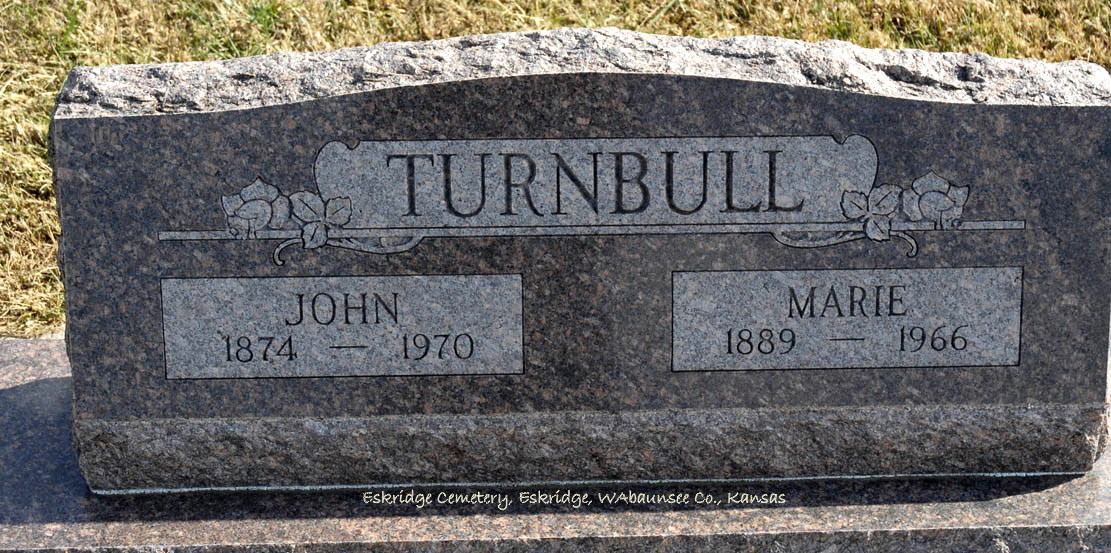 | Marriage | She married Robert Turnbull on 20 November 1907 in Marshall, Kansas, USA. Myrtle Mabel Barklow was, age 25, Robert Turnbull was, age 22. |