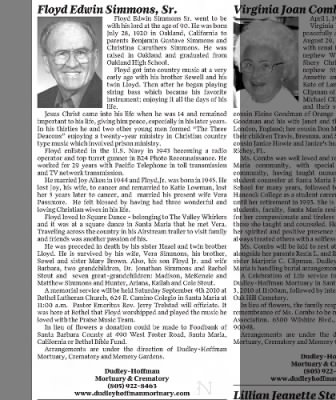 | Residence | Floyd Edwin Simmons lived in Santa Maria, CA.2 |