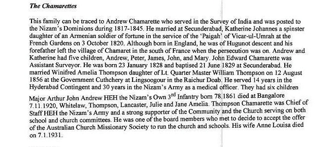 | Birth | Andrew Chamrette was born on 30 November 1833 in Secunderabad, Madras, India. |