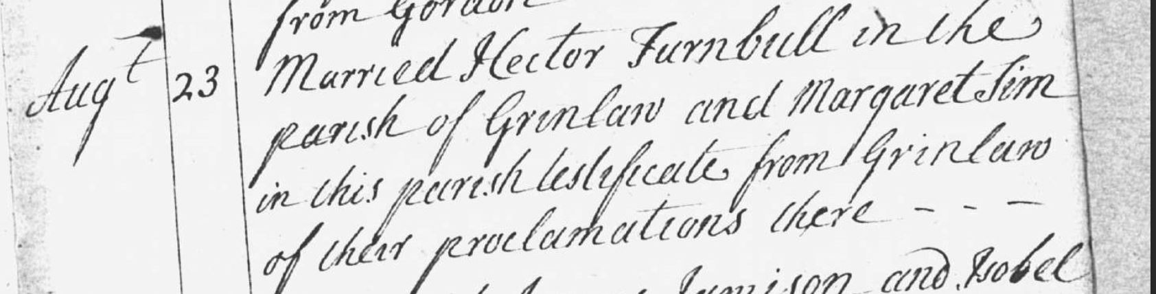 | Birth | Margaret Sim was born before 10 April 1715 in Legerwood Berwick Scotland. |