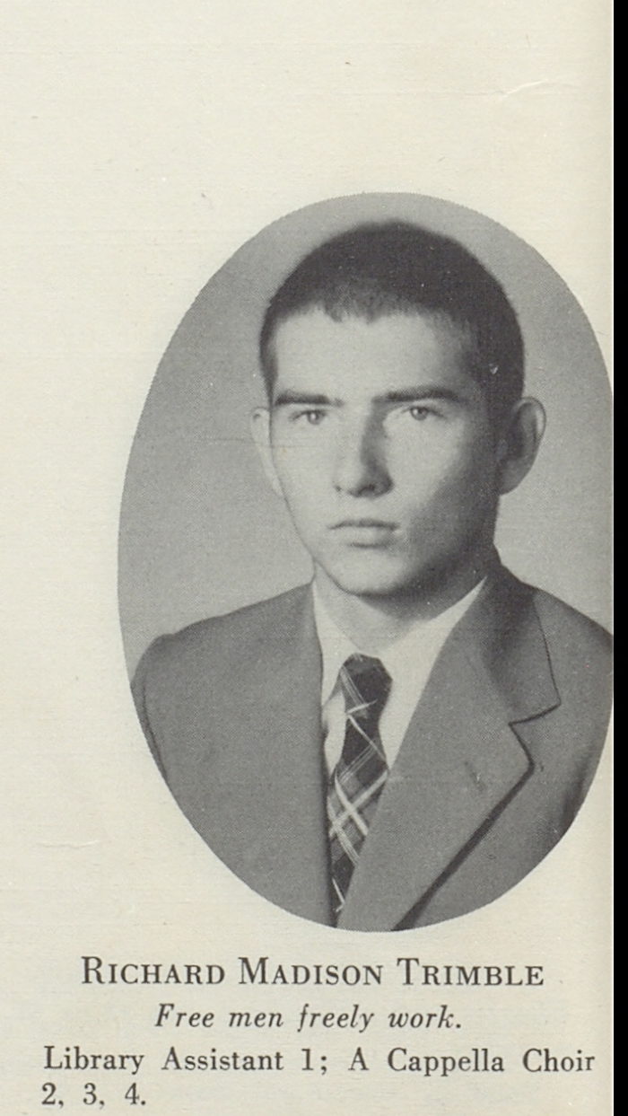 | Birth | Richard Madison Trimble was born on 23 May 1936 in Fort Valley, Peach County, Georgia, United States of America.1,2,3,4,5 |