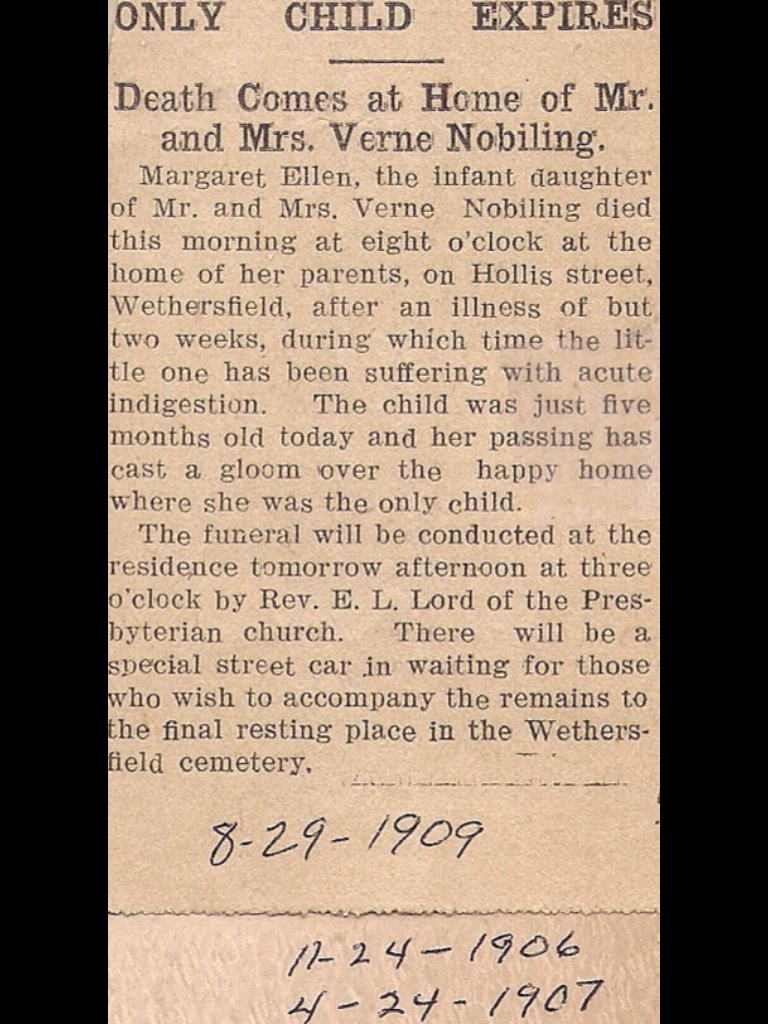 | Burial | Margaret Ellen Nobiling was buried in Kewanee, Henry County, Illinois, United States of America.1 |