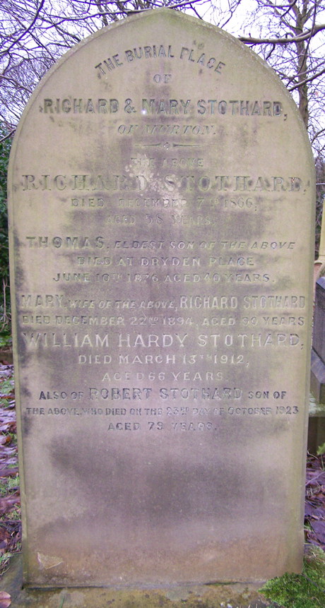 Richard, Mary, Thomas, William Hardy & Robert Stothard Headstone