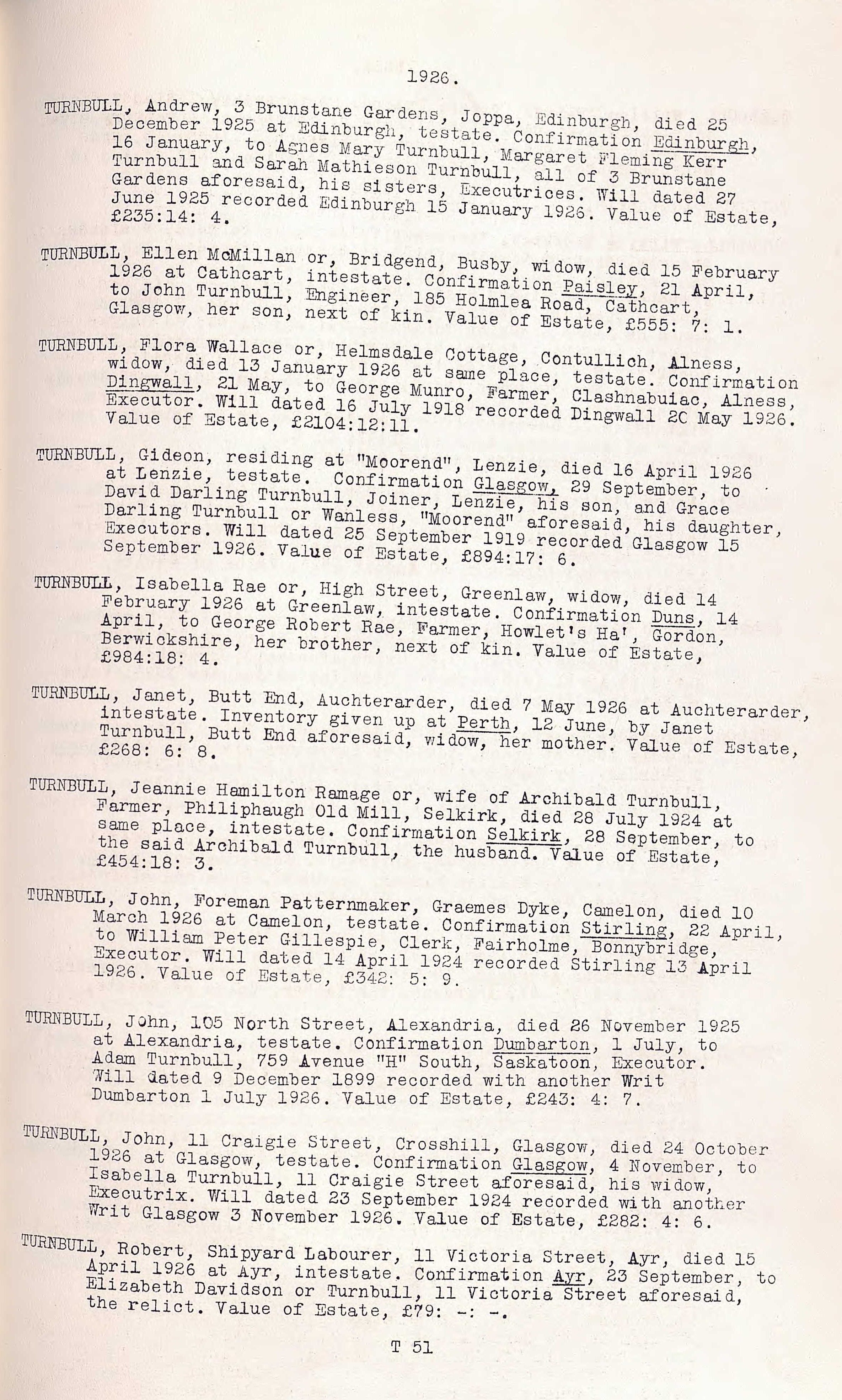 - [S3147] Ancestry.com, Scotland, National Probate Index (Calendar of Confirmations and Inventories), 1876-1936