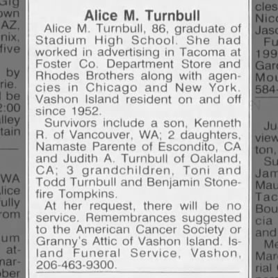 Alice Stryker Turnbull - Obituary