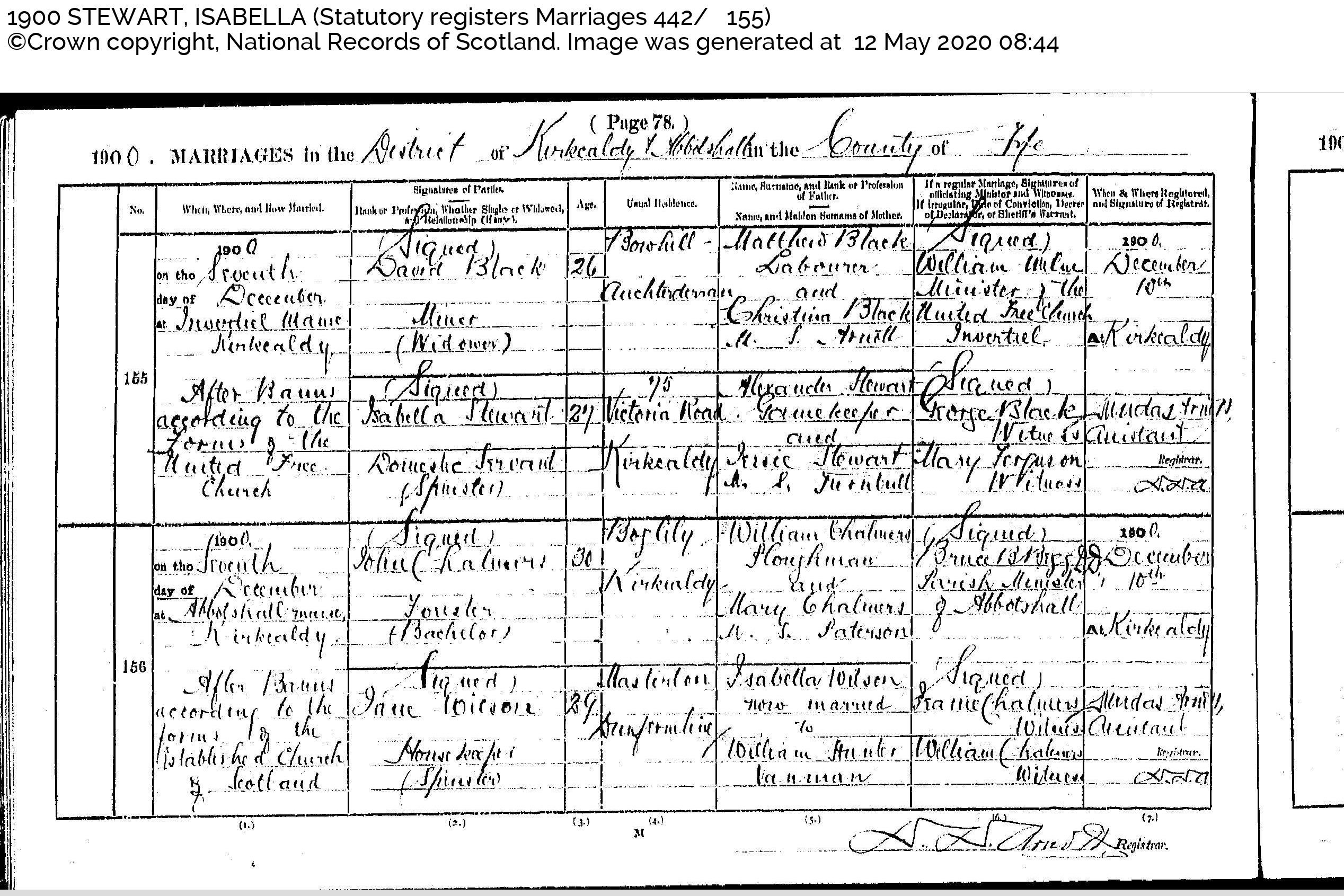 | Death | Isabella Moncur Stewart died UNKNOWN. |