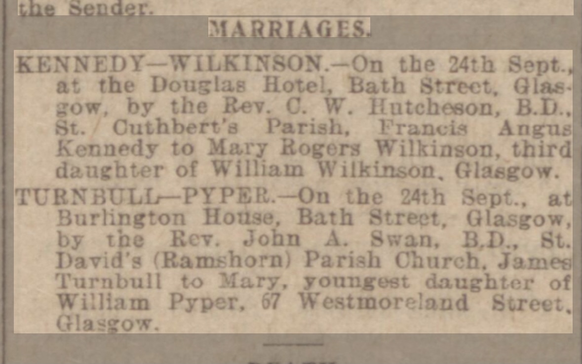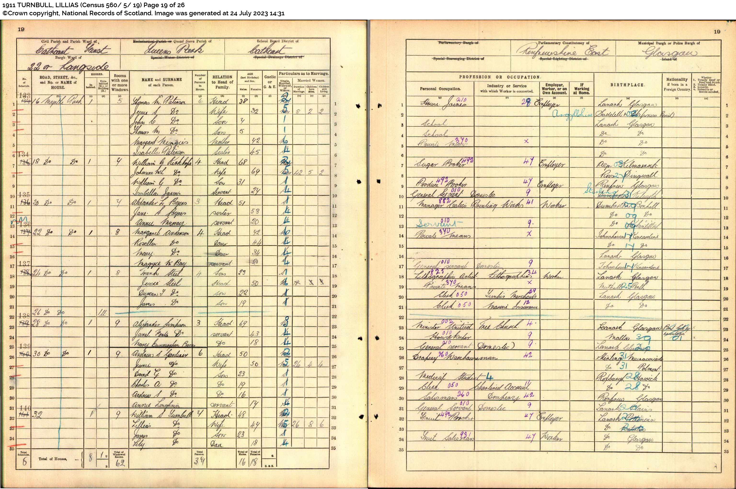 | Residence | James Turnbull, Fruit Merchant, lived Relation to Head of House: Son in Glasgow Govan, Lanarkshire, Scotland, in 1891.1 |