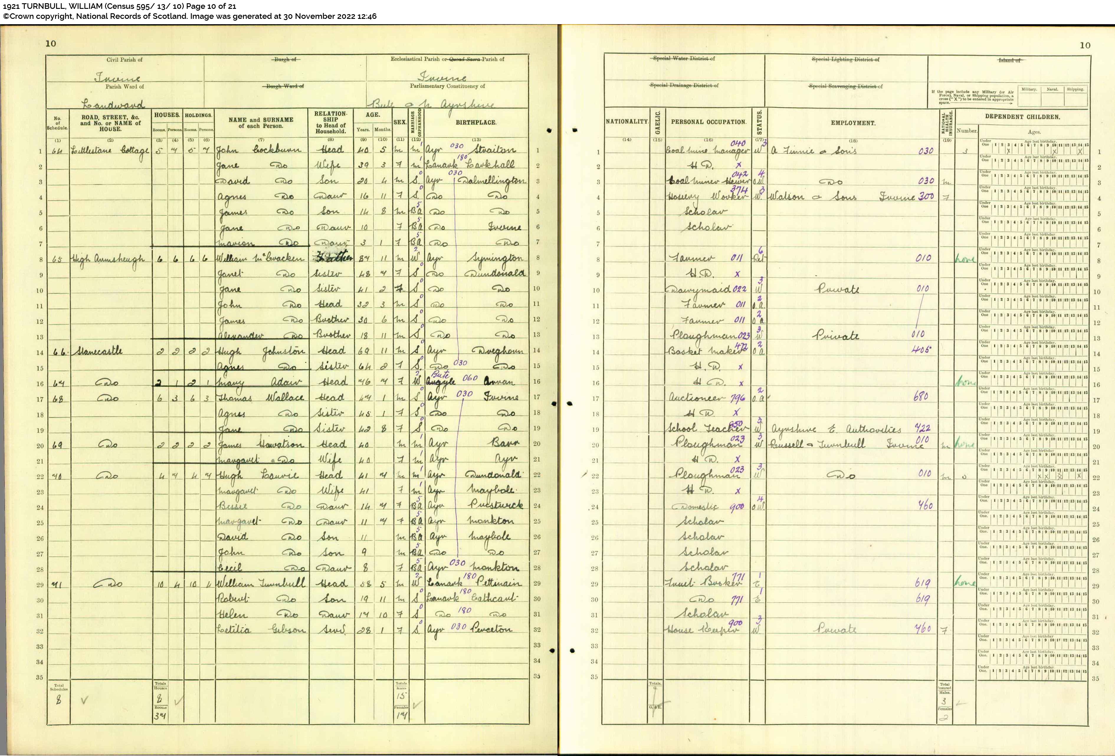 | Residence | William Shankley Turnbull lived in Carstairs, Lanarkshire, Scotland.8 |