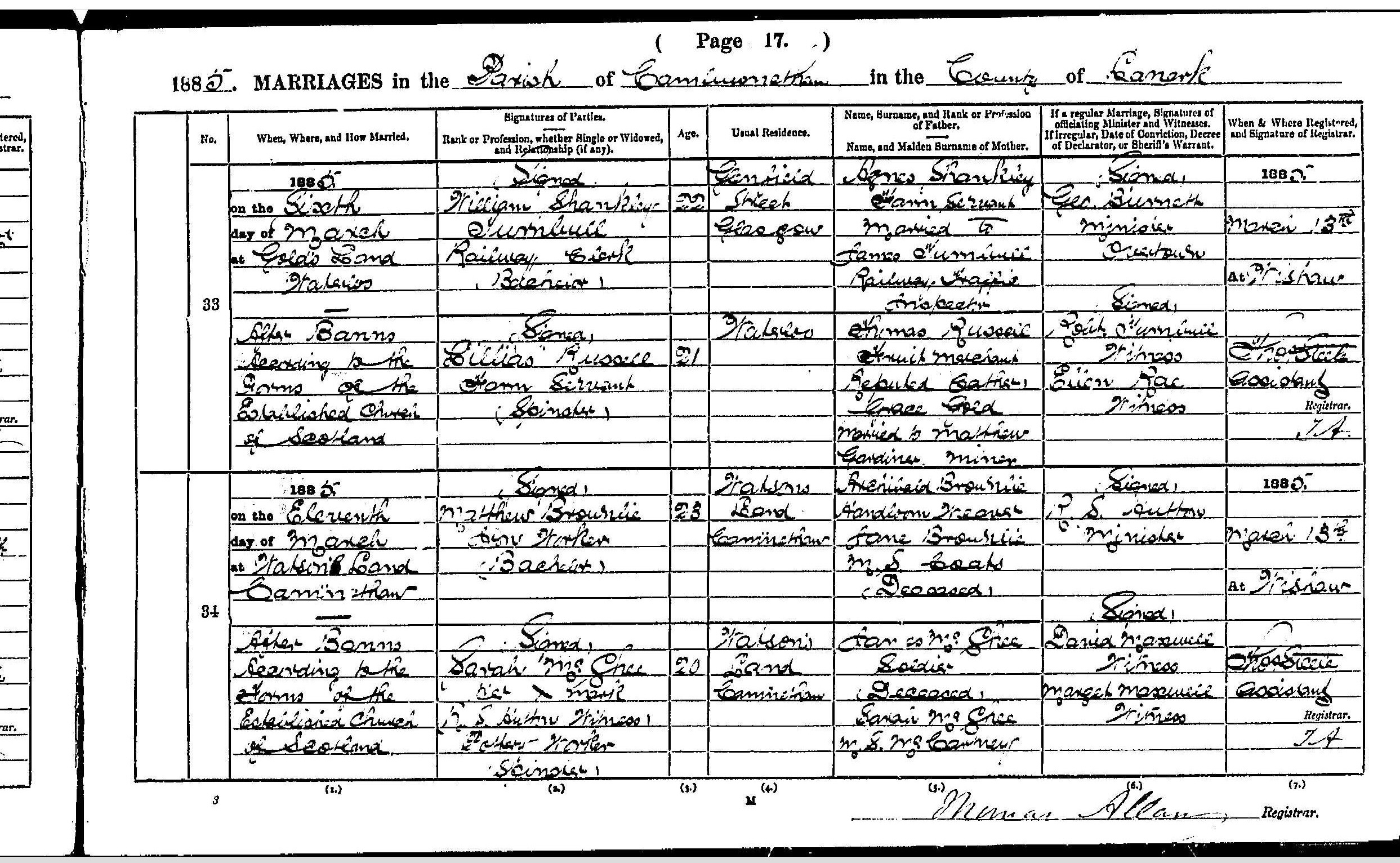 - [S3031] Ancestry.com, 1891 Scotland Census, Parish: Cambusnethan; ED: 7; Page: 24; Line: 17; Roll: CSSCT1891_230