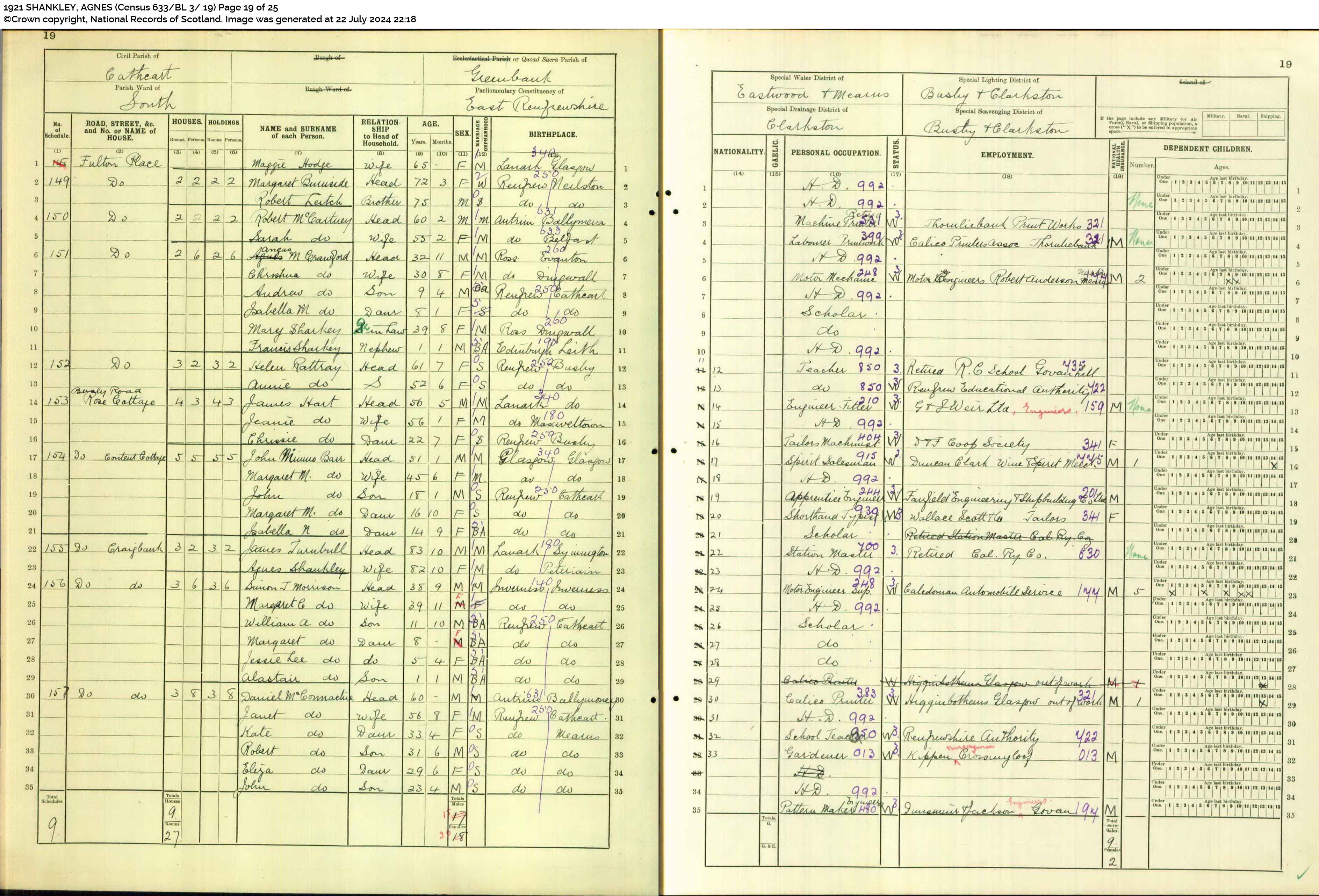 - [S3029] Ancestry.com, 1901 Scotland Census, Parish: Eastwood; ED: 16; Page: 14; Line: 1; Roll: CSSCT1901_192