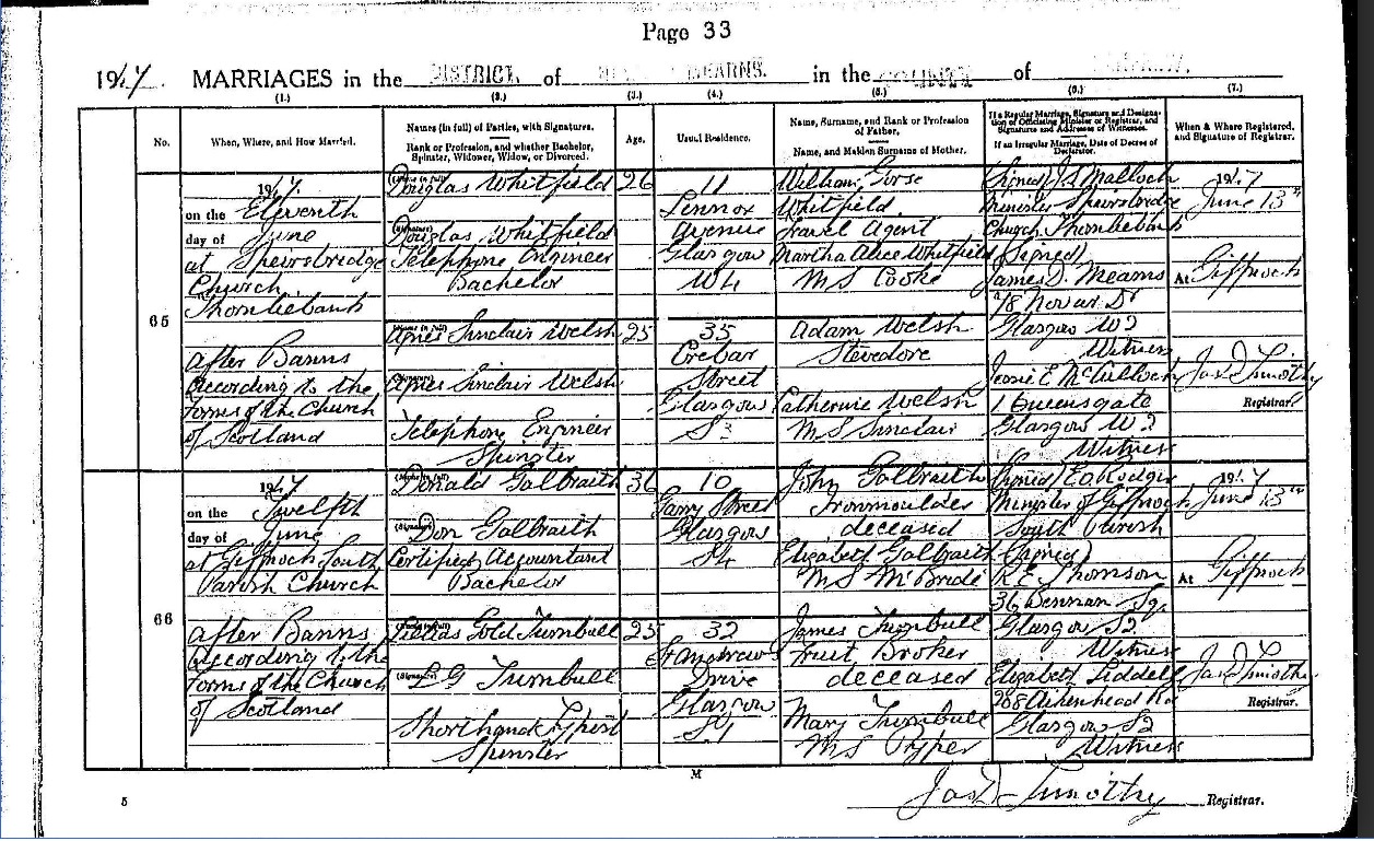 1947 Marriage of Donald Galbraith and Lilias Gold Turnbull