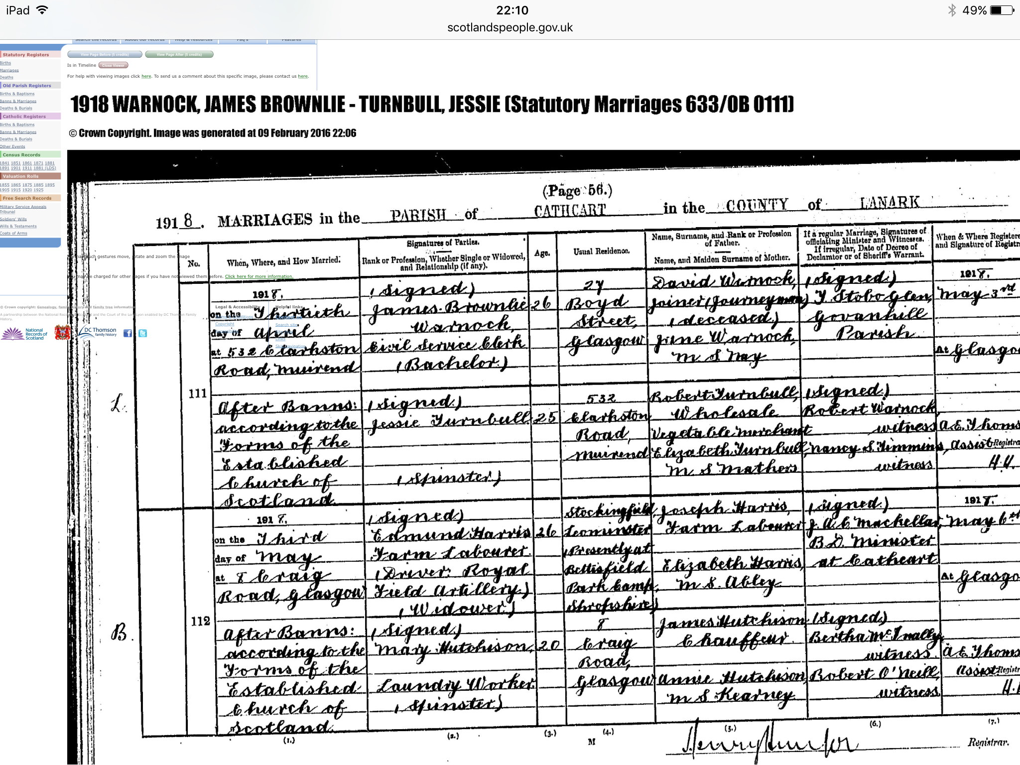 - [S3029] Ancestry.com, 1901 Scotland Census, Parish: Glasgow Govan; ED: 89; Page: 11; Line: 7; Roll: CSSCT1901_312