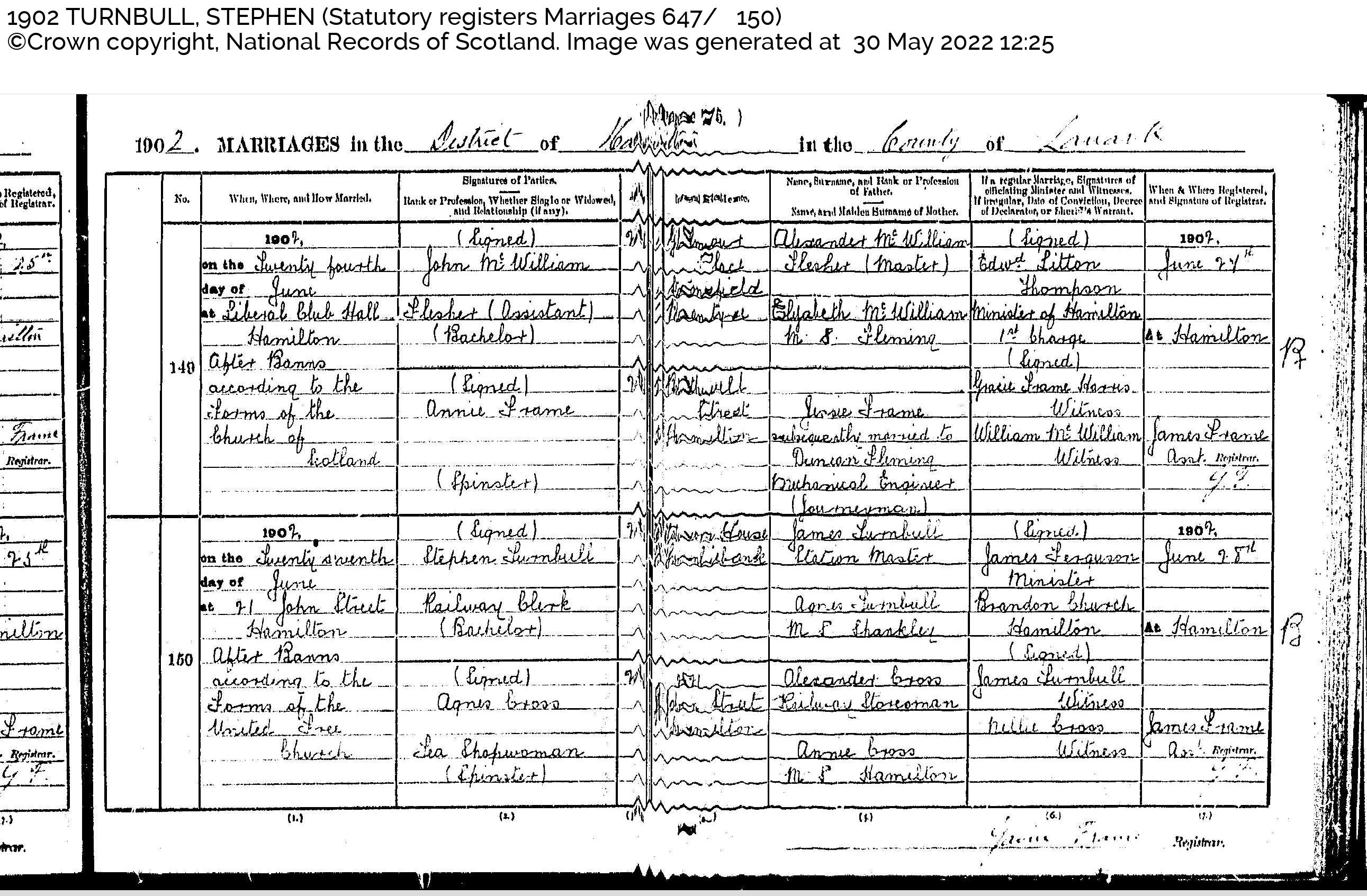 Stephen Turnbull and Agnes Cross marriage