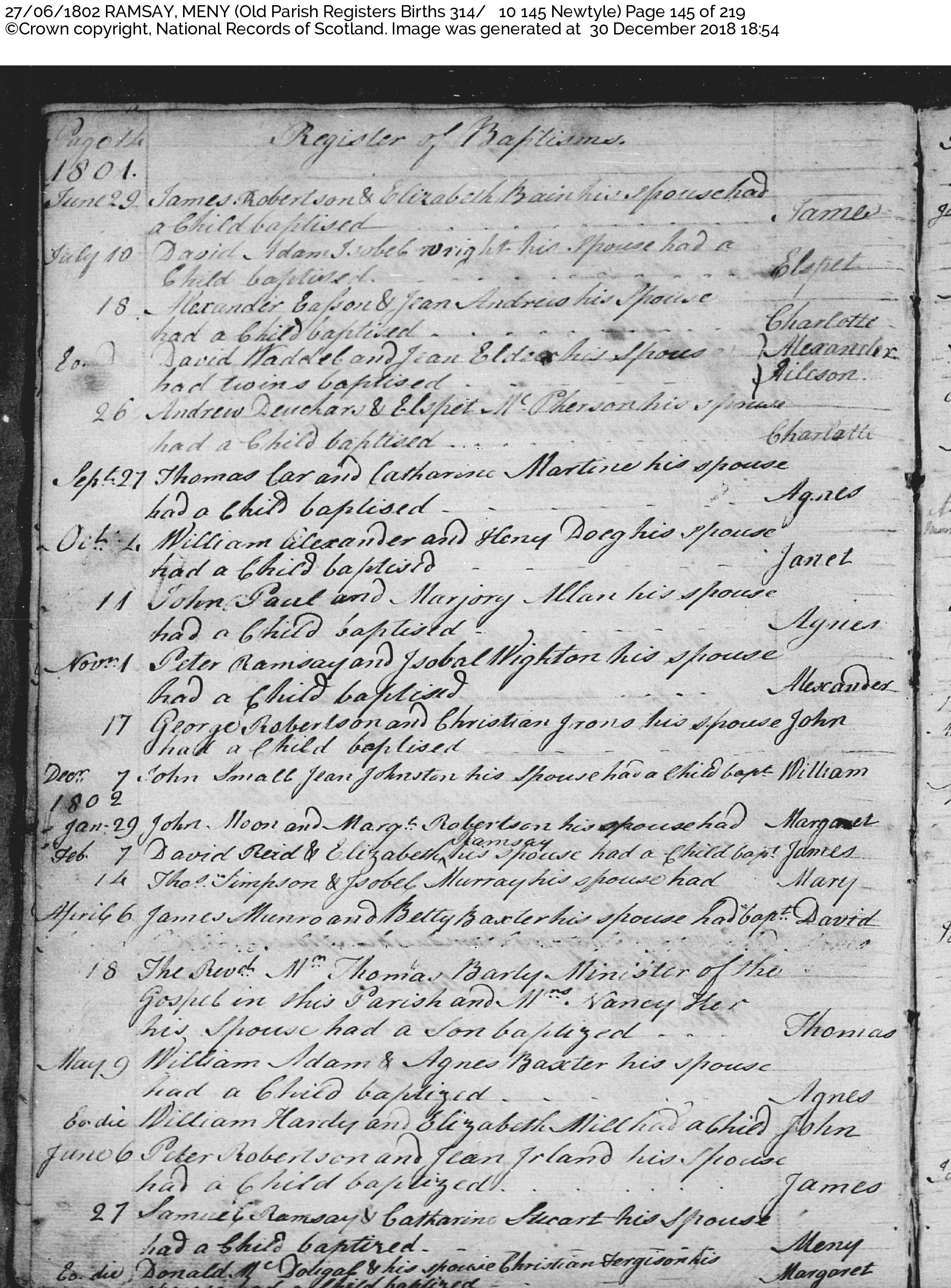 | Baptism | He was baptized on 11 July 1830 in Kettins, Angus, Scotland.2 |