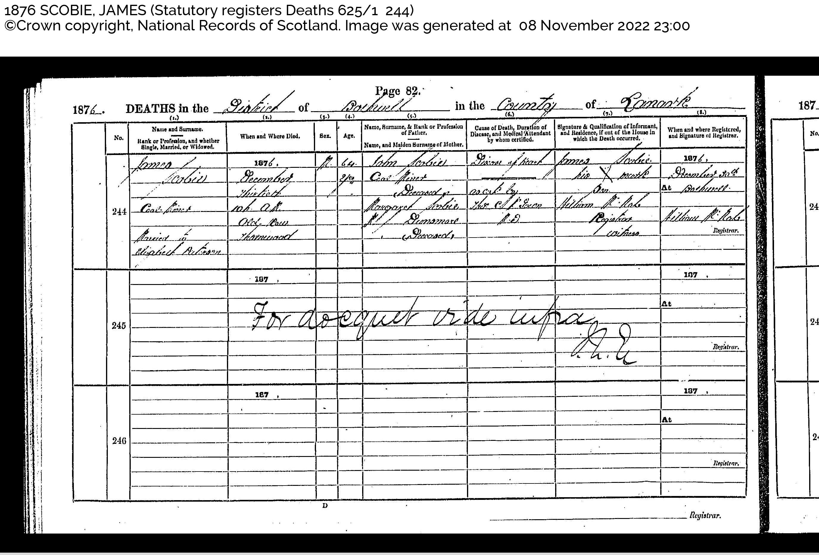 | Birth | James Scobbie was born on 23 March 1812 in Barony, Lanarkshire, Scotland.1 |