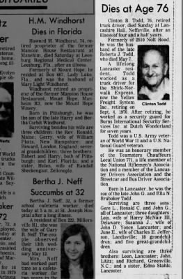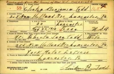 | Residence | Clinton Benjamin Todd lived in Manheim, Lancaster, Pennsylvania, USA, in 1920.2 |