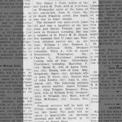 | Birth | Mary L Todd was born about 1863 in Pennsylvania.1,2 |
