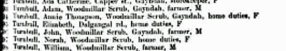 From L to R are:Paul Leo Turnbull, Clara May Turnbull (Giddings), David Edmund Turnbull, Agnes Turnbull, David Turnbull, Mary Delehant Turnbull standing with Helen Louise Turnbull (Jarry).