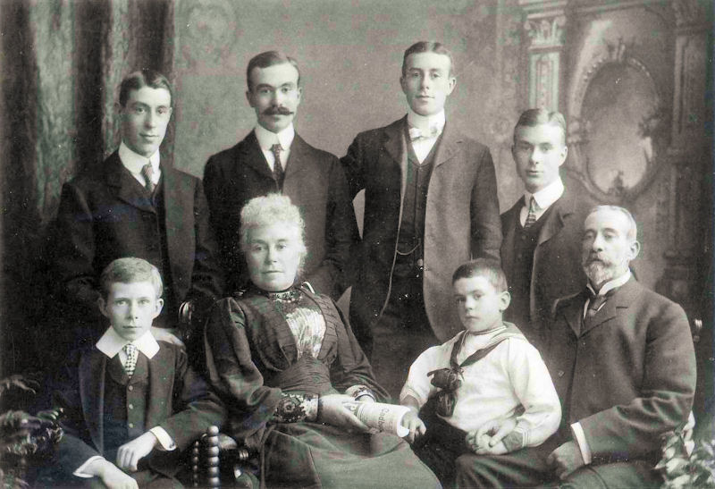 Richard Boyd Turnbull Family, circa 1900.(L-R) back row Geoffrey, Percy, Frank and Harry Gordon.(L-R) front row Eric, Elizabeth Robinson, Allan, Richard Boyd Turnbull