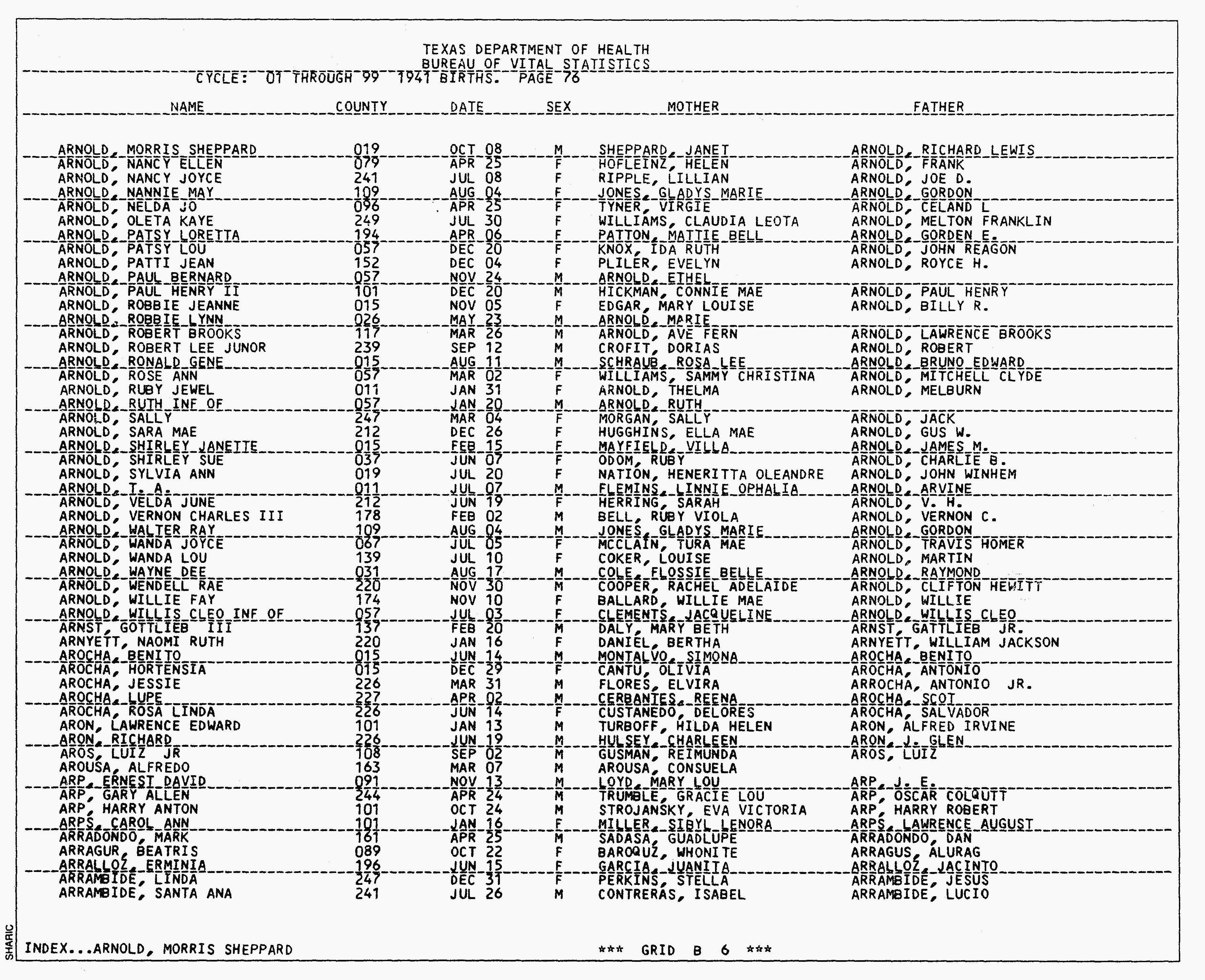 Texas, U.S., Birth Index, 1903-1997