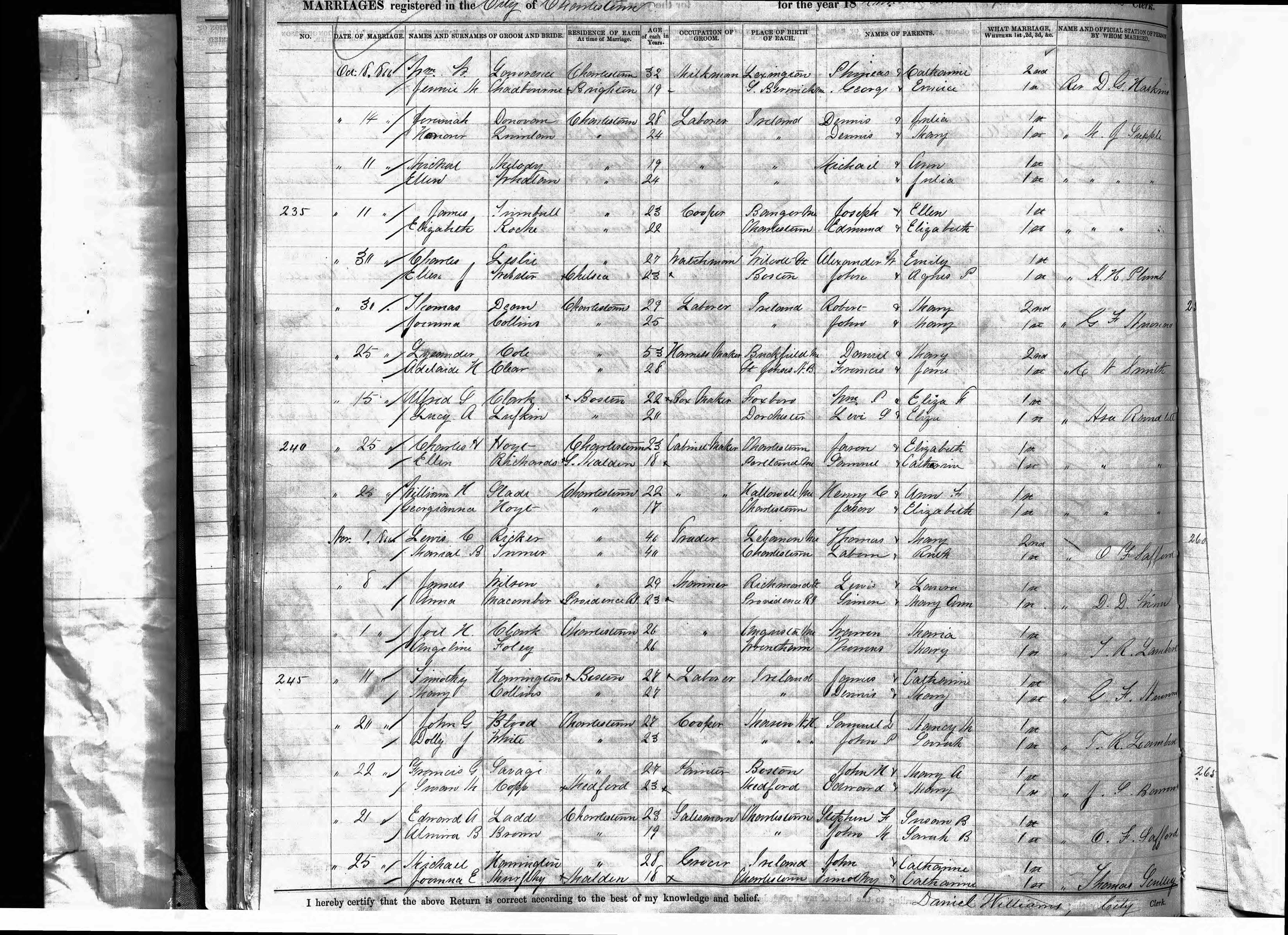 Massachusetts, Marriage Records, 1840-1915