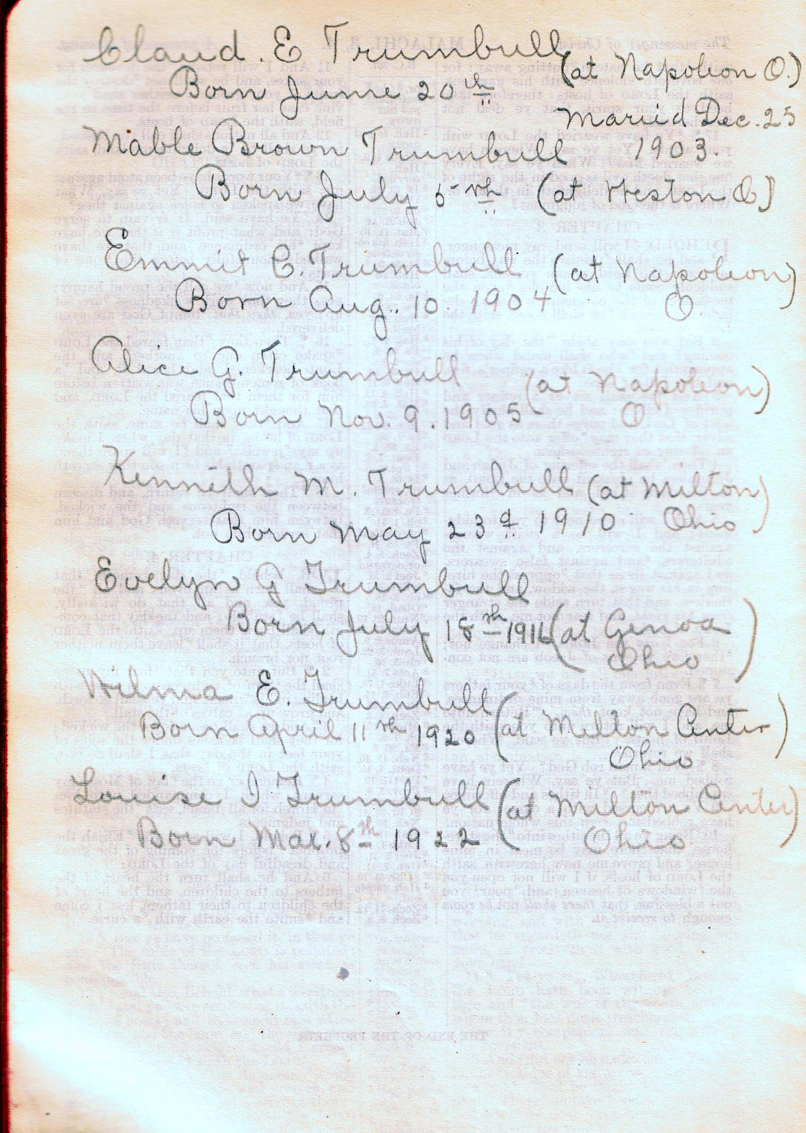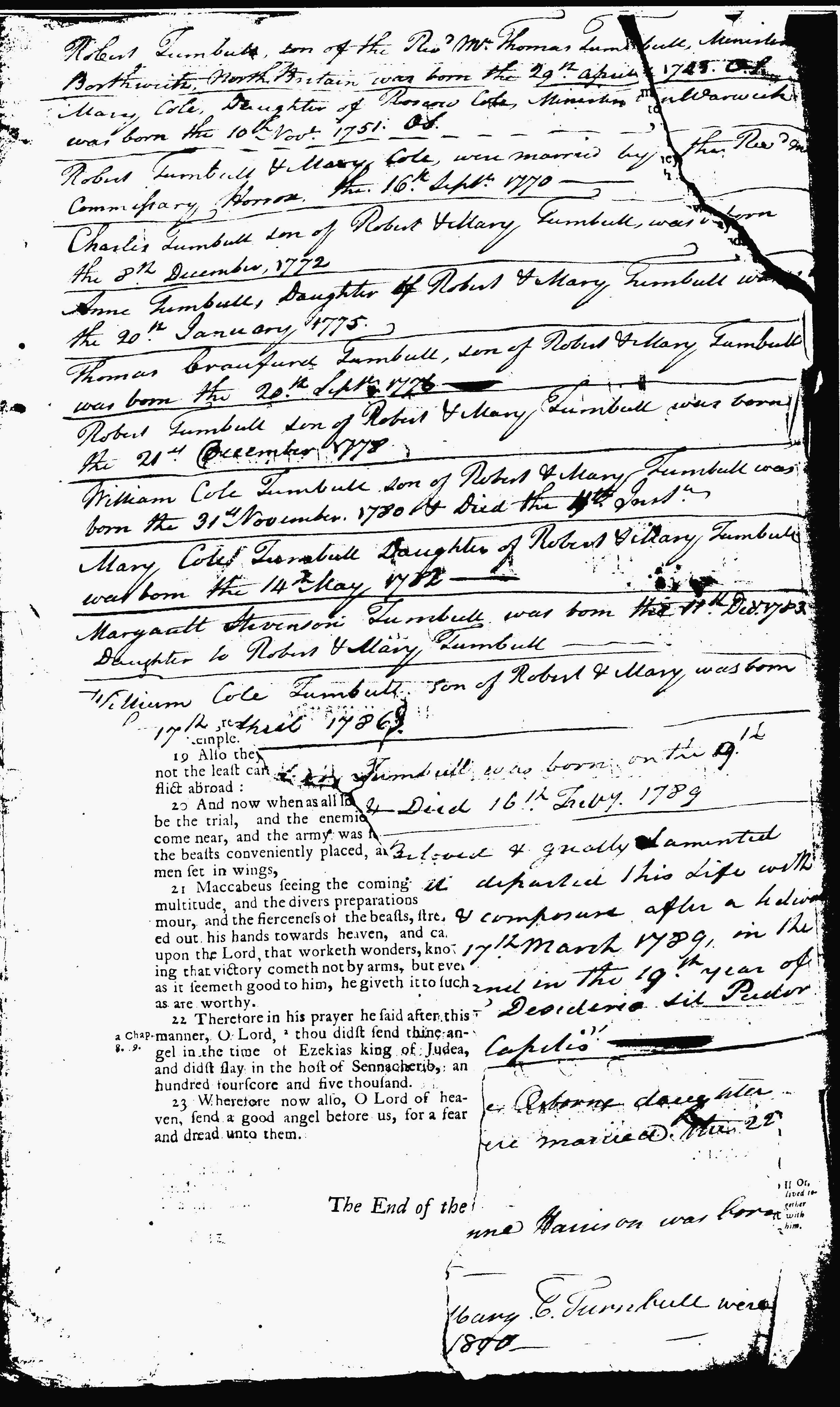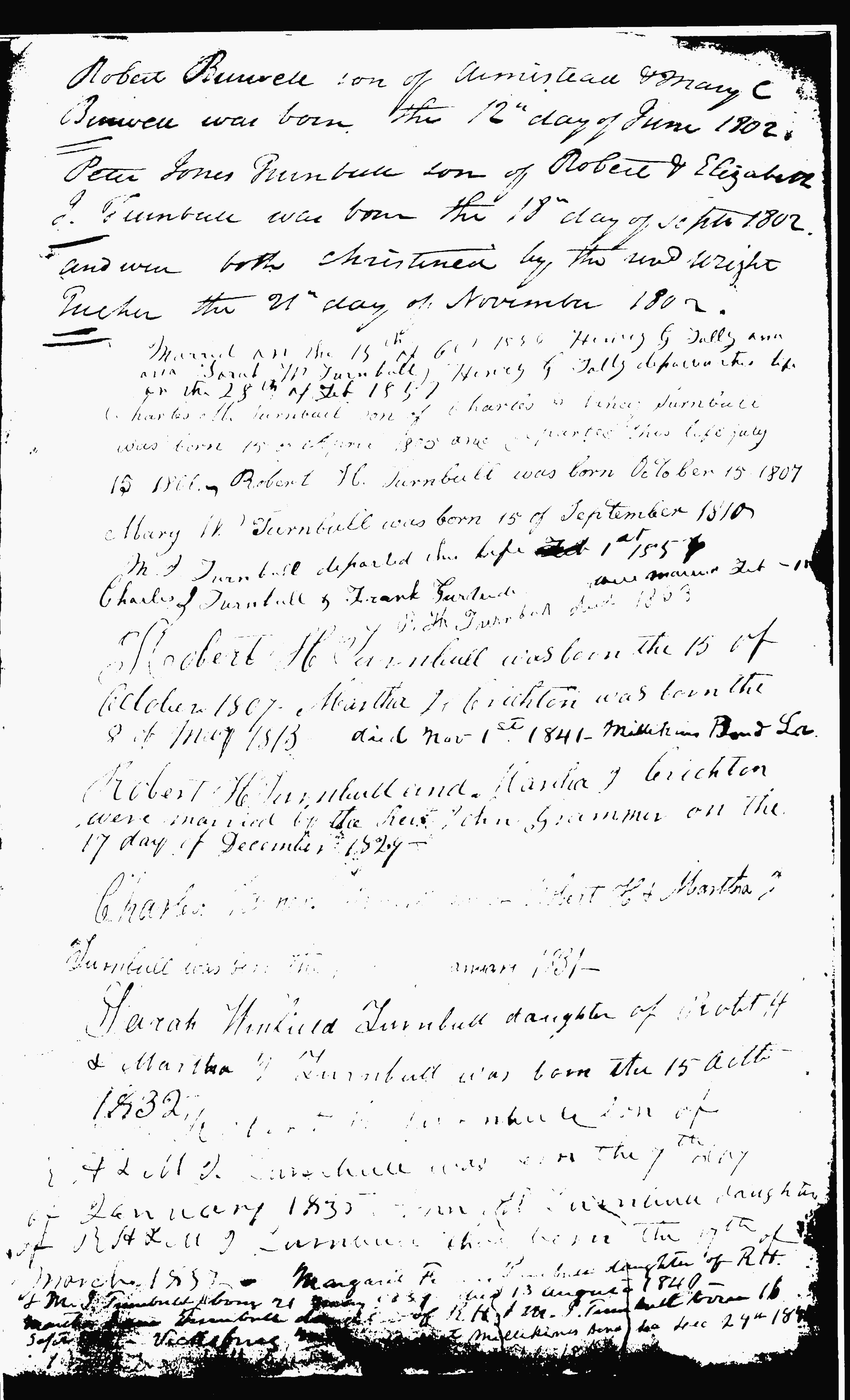 Turnbull Family Bible - second sheet of entries